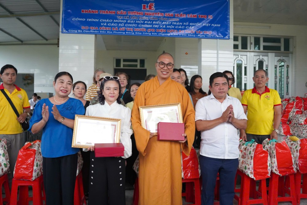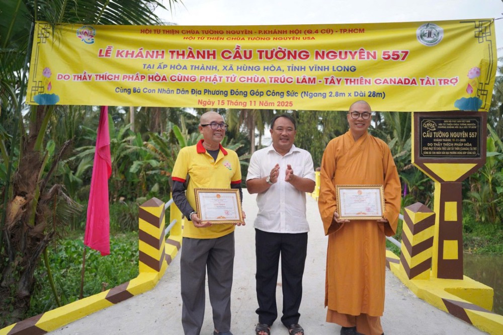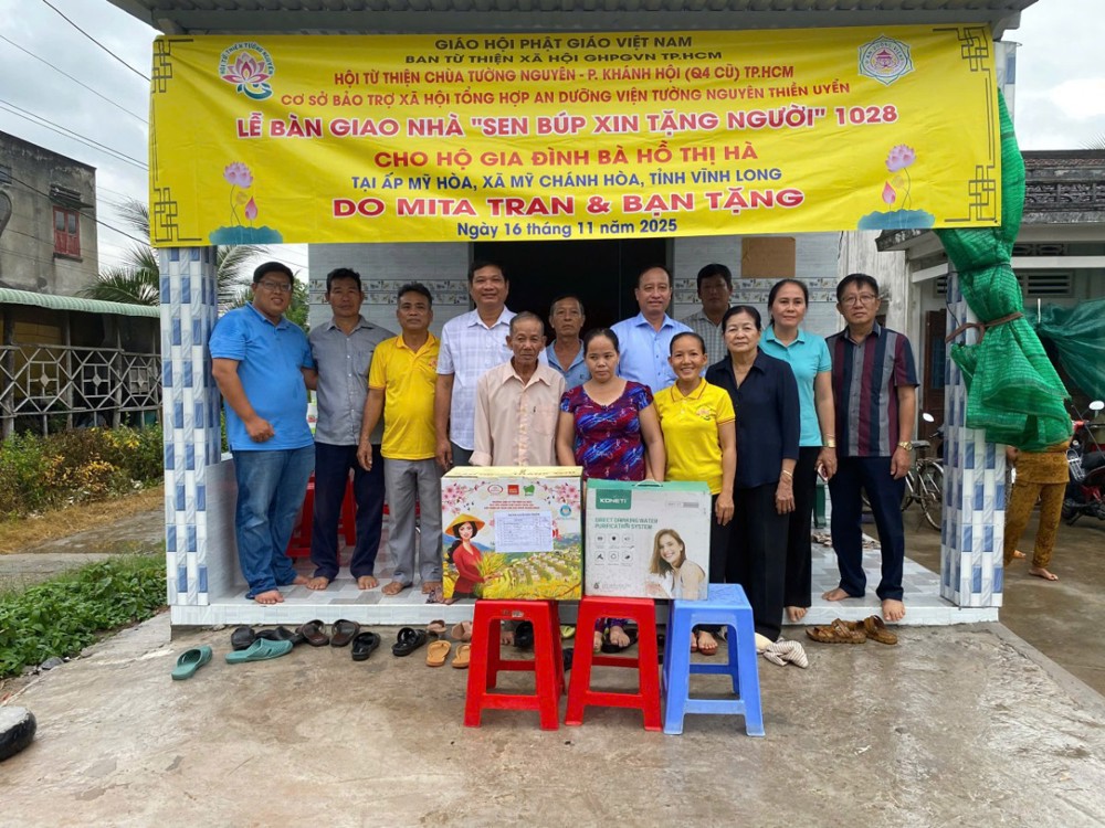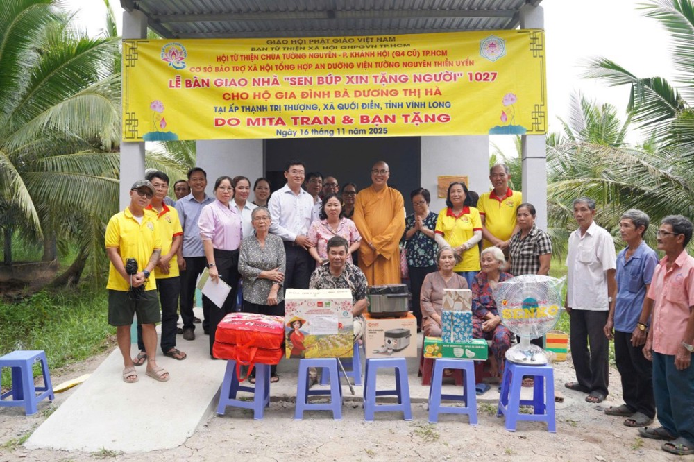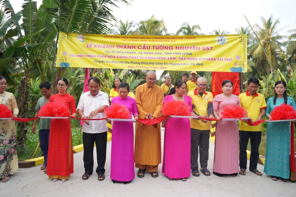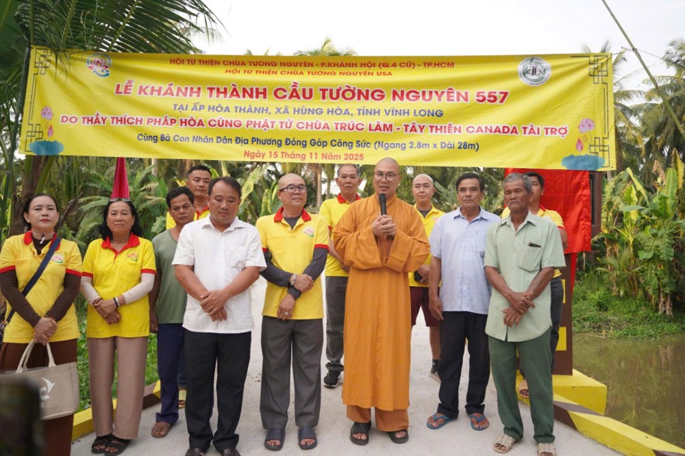 PSO - Trong hai ngày 15 và 16/11/2025, phái đoàn Ban Từ thiện xã hội (TTXH) GHPGVN TP.HCM và Hội từ thiện chùa Tường Nguyên do Thượng tọa Thích Minh Phú – Ủy viên HĐTS, Phó Trưởng ban Thường trực Ban Từ thiện xã hội GHPGVN TP.HCM, Trụ trì chùa Tường Nguyên làm trưởng đoàn, cùng các mạnh thường quân đã đến tỉnh Vĩnh Long để thực hiện lễ khánh thành và bàn giao nhiều công trình ý nghĩa phục vụ đời sống nhân dân.