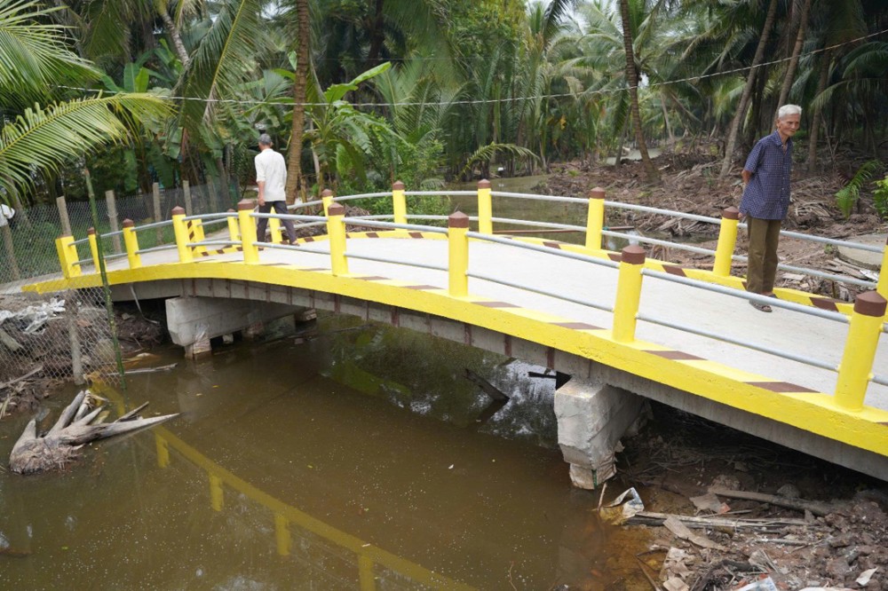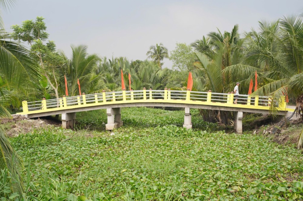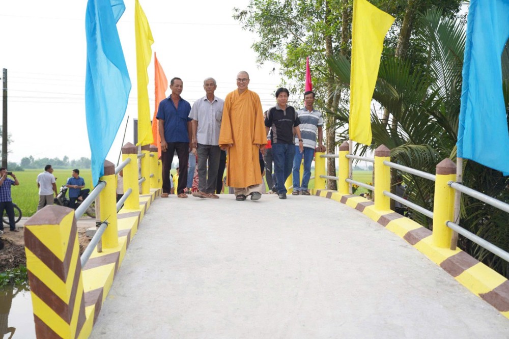 Trong chương trình làm việc, đoàn đã khánh thành và bàn giao 4 cây cầu giao thông nông thôn: Cầu Tường Nguyên 557 (xã Hùng Hòa): ngang 2,8 m, dài 28 m, trọng tải 2 tấn, kinh phí 320 triệu đồng do thầy Thích Pháp Hòa tài trợ. Cầu Tường Nguyên 562 (xã Vĩnh Kim): ngang 2,8 m, dài 18 m, trọng tải 2 tấn, kinh phí 230 triệu đồng. Cầu Tường Nguyên 563 (xã Mỏ Cày): ngang 2,8 m, dài 18 m, trọng tải 2 tấn, kinh phí 230 triệu đồng. Cầu Tường Nguyên 558 (xã Tiên Thủy): ngang 3,3 m, dài 26 m, trọng tải 3 tấn, kinh phí 420 triệu đồng.