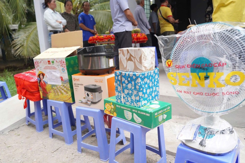 Ngoài ra, đoàn đã bàn giao 2 căn nhà “Sen búp xin tặng người” số 1027 cho hộ bà Dương Thị Hà (xã Quới Điền) và số 1028 cho hộ bà Hồ Thị Hà (xã Mỹ Chánh Hoà). Mỗi căn 60 triệu đồng và quà tặng 4 triệu đồng do gia đình bà MITA TRAN và các bạn tài trợ. Với tổng kinh phí thực hiện cho các chương trình tại Vĩnh Long là trên 1 tỷ 370 triệu đồng.