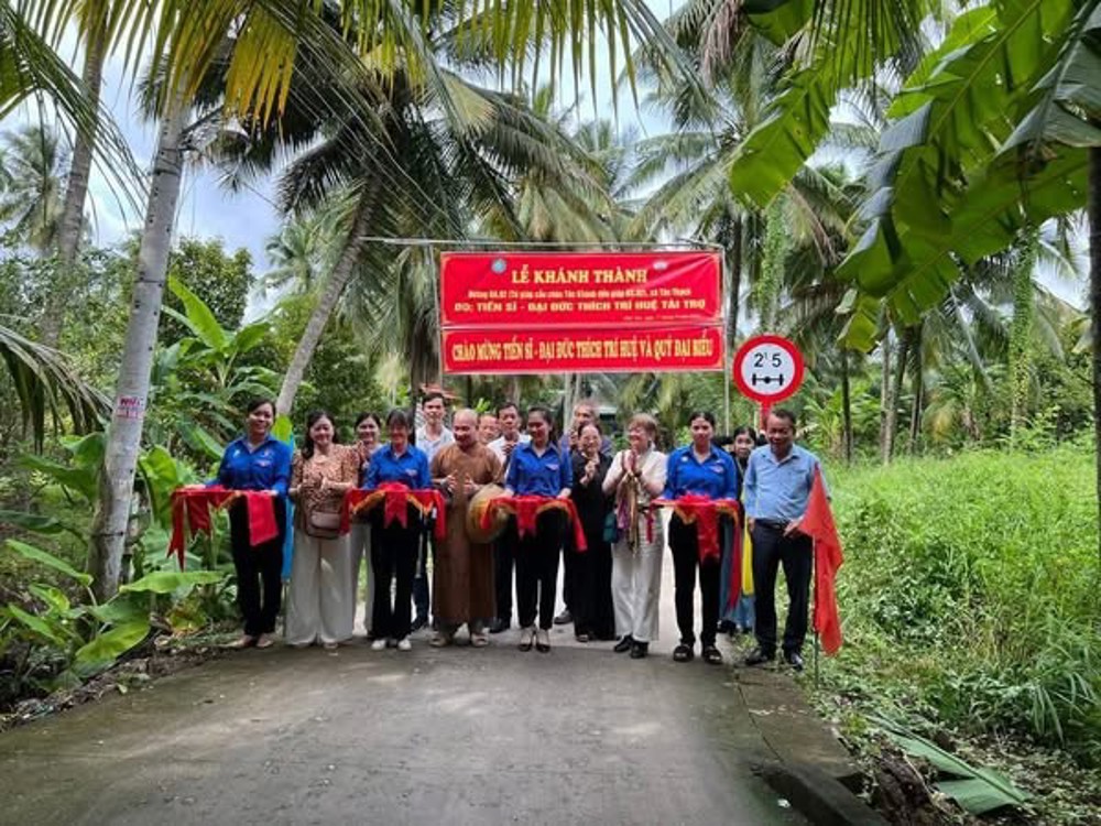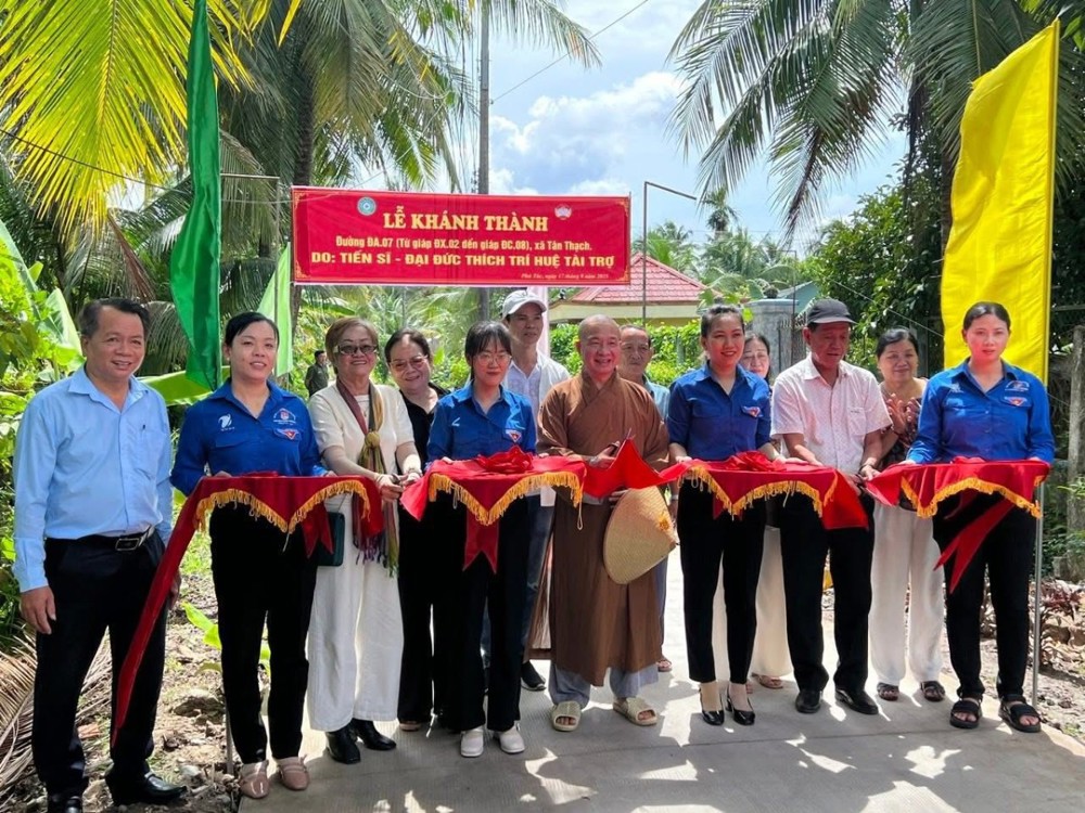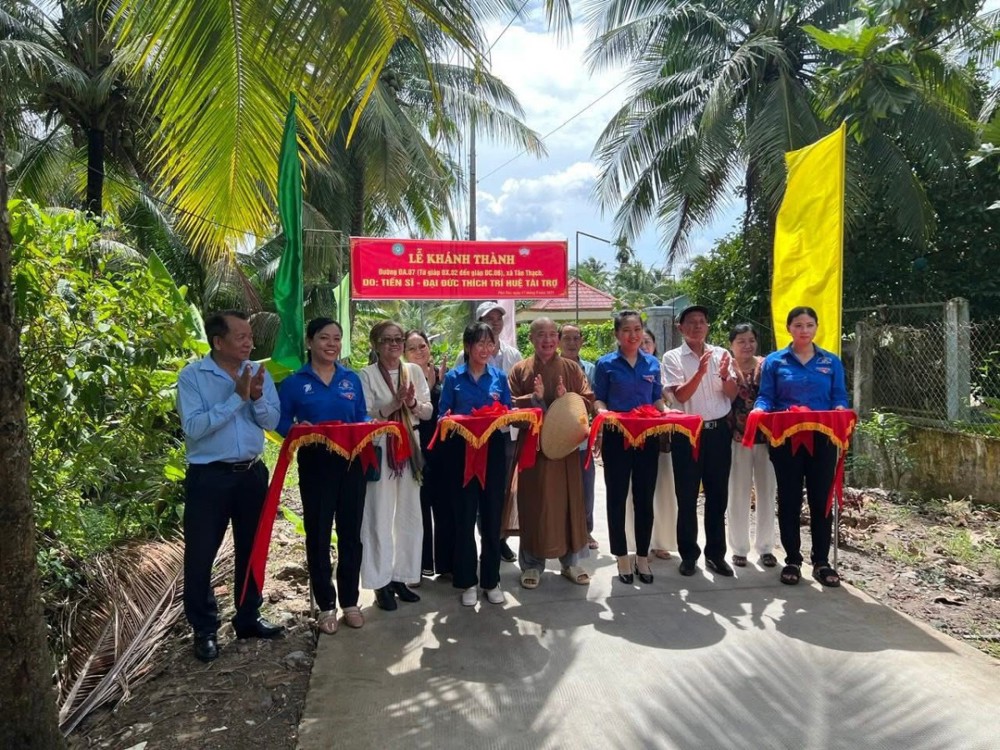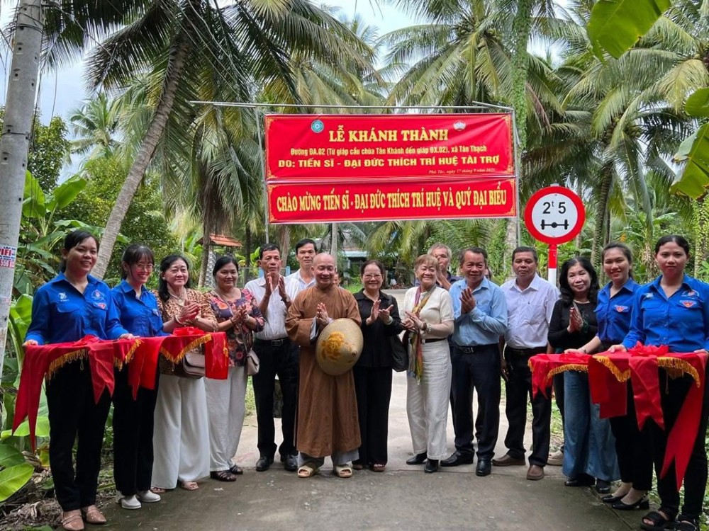 Với ý nghĩa đó, nhân dịp mùa trăng đoàn viên năm nay, ngày 03/10/2025 (nhằm ngày 12/8 năm Ất Tỵ) Phân ban Từ thiện Đối ngoại và Quan hệ Quốc tế Trung ương, dưới sự hướng dẫn của Đại đức Thích Trí Huệ – Chánh Thư ký Ban Từ thiện Xã hội Trung ương, Trưởng Phân ban Từ thiện Đối ngoại & Quan hệ Quốc tế Trung ương, Phó Thường trực Ban Từ thiện GHPGVN tỉnh Vĩnh Long, Trụ trì chùa Pháp Tạng, đã phối hợp cùng chính quyền địa phương trang trọng tổ chức lễ khánh thành và bàn giao đưa vào sử dụng 4 tuyến đường giao thông nông thôn trên địa bàn tỉnh Vĩnh Long với tổng kinh phí thực hiện 2 tỷ 663 triệu đồng.