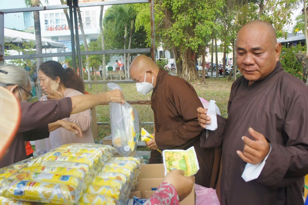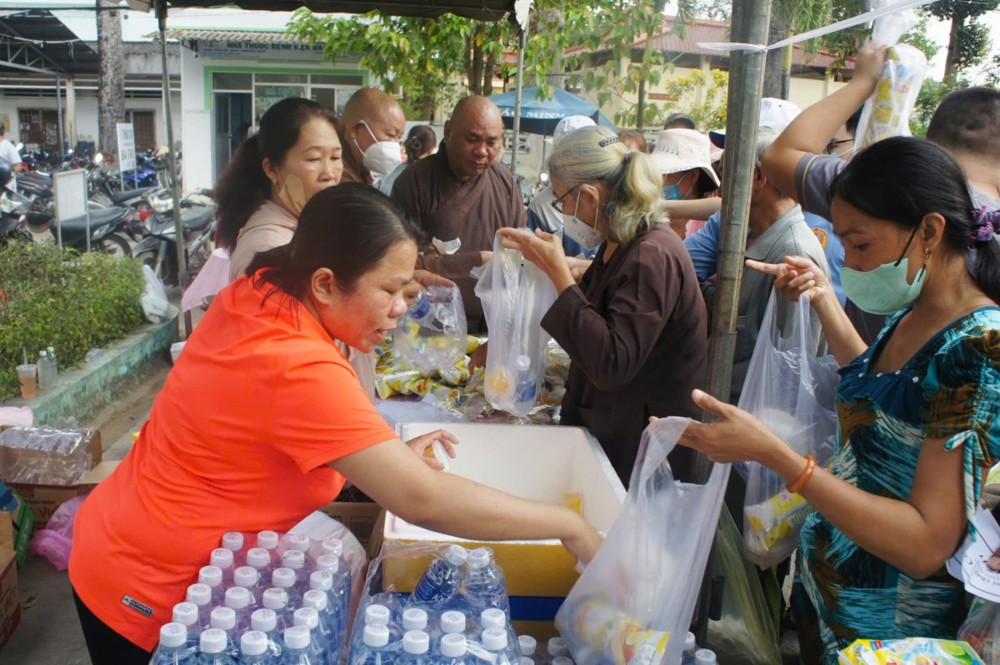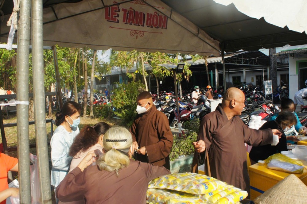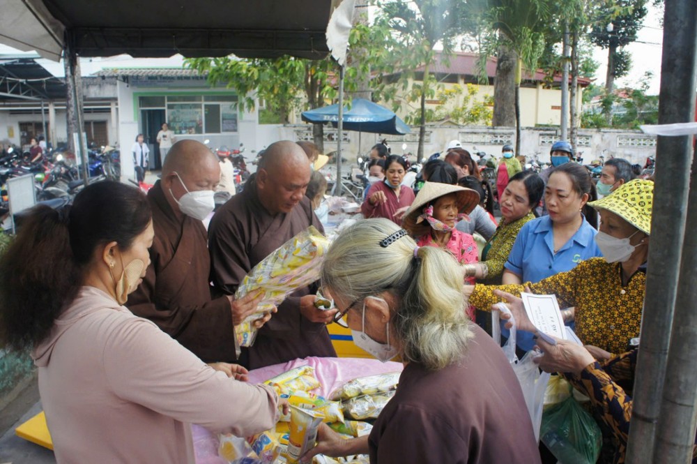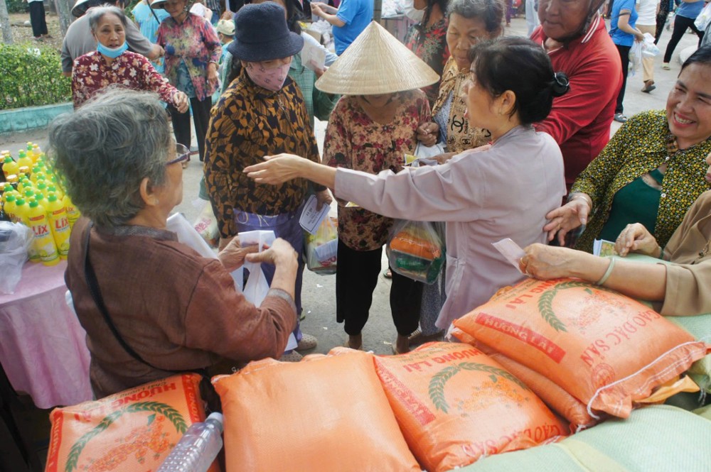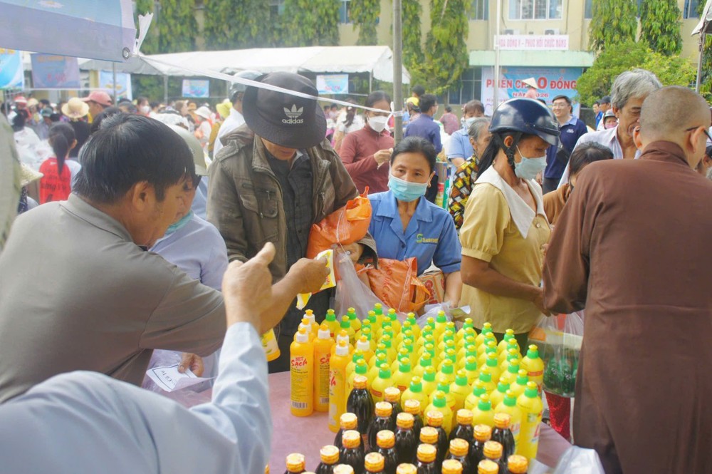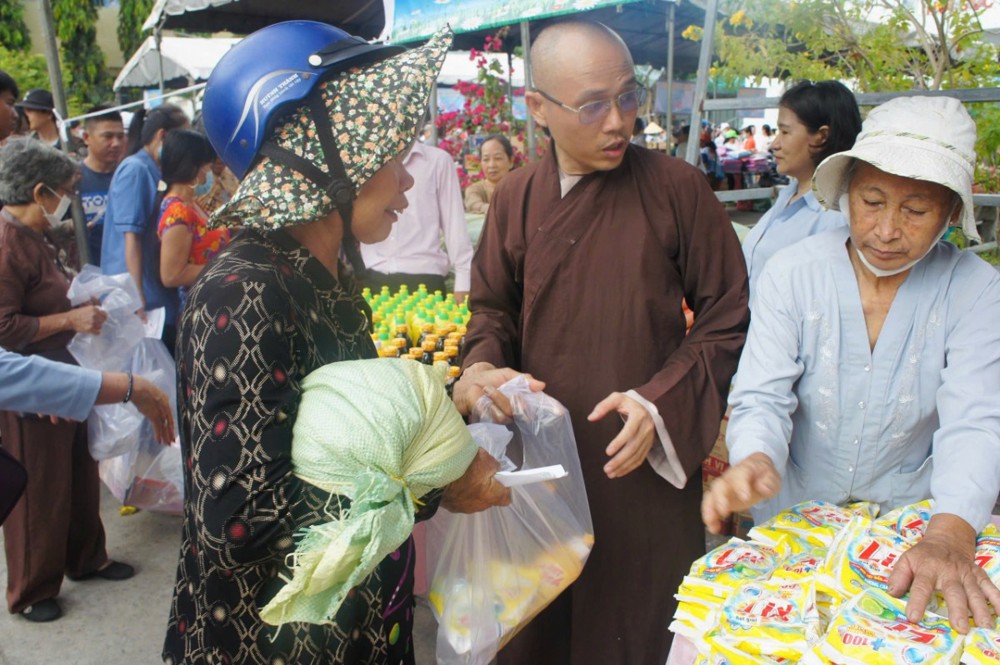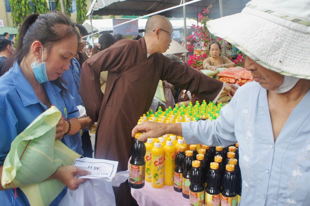 Không đơn thuần là một hoạt động từ thiện, phiên chợ “0 đồng” còn là biểu hiện sinh động của tinh thần từ bi, cứu khổ ban vui – giá trị cốt lõi của đạo Phật được cụ thể hóa giữa đời thường. Trong không gian ấm áp nghĩa tình tại bệnh viện, từng gian hàng được bày trí chu đáo với nhiều nhu yếu phẩm thiết yếu như gạo, mì, sữa, bánh, gia vị… tất cả đều được trao tặng miễn phí, giúp người nhận vơi bớt phần nào gánh nặng trong những ngày điều trị bệnh.