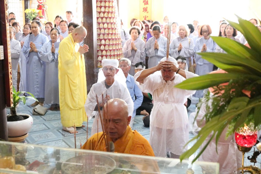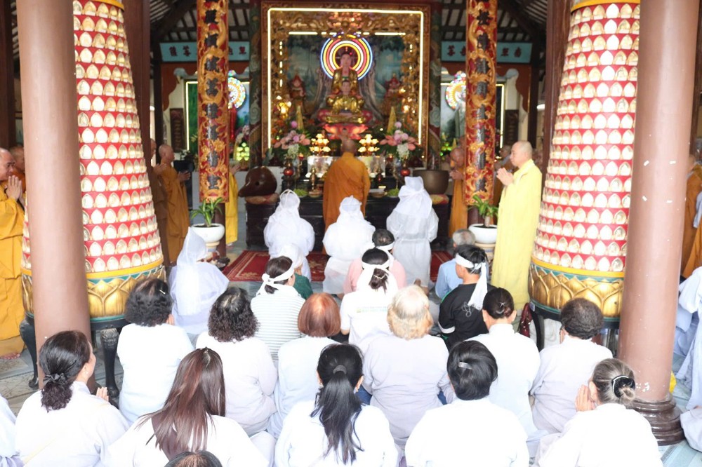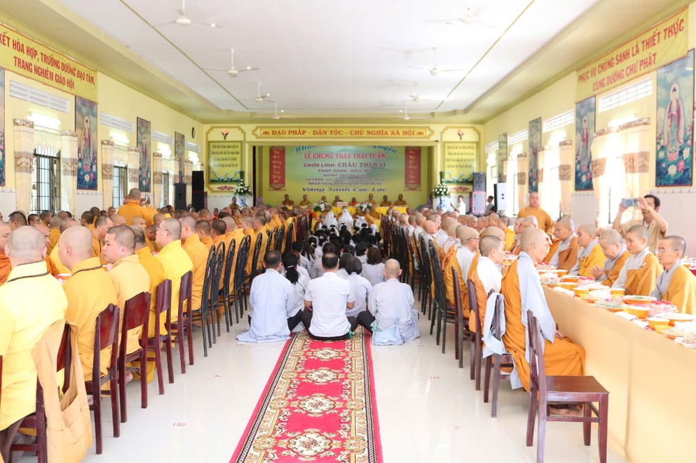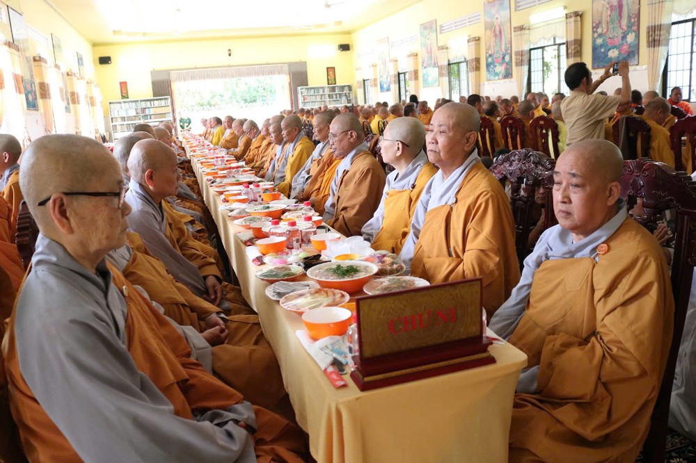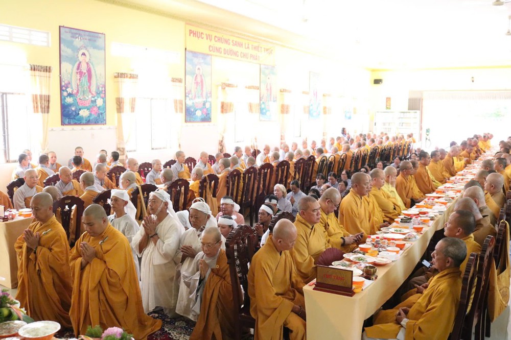 Buổi lễ khép lại, sau lời phát biểu cảm tạ của ĐĐ.Thích Thiện Lộc, chư Tôn đức thọ trai trong chánh niệm. Tang gia hiếu quyến thực hiện hiếu sự viên mãn.