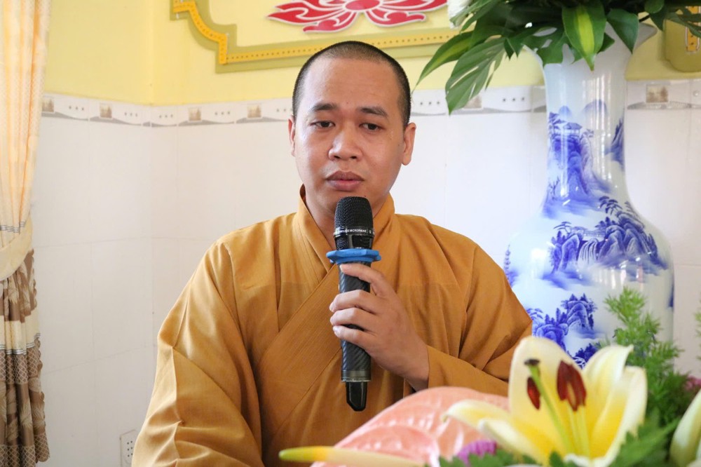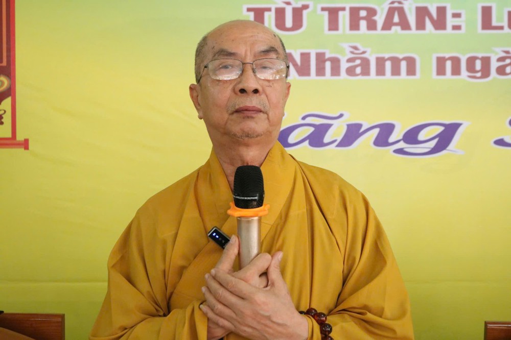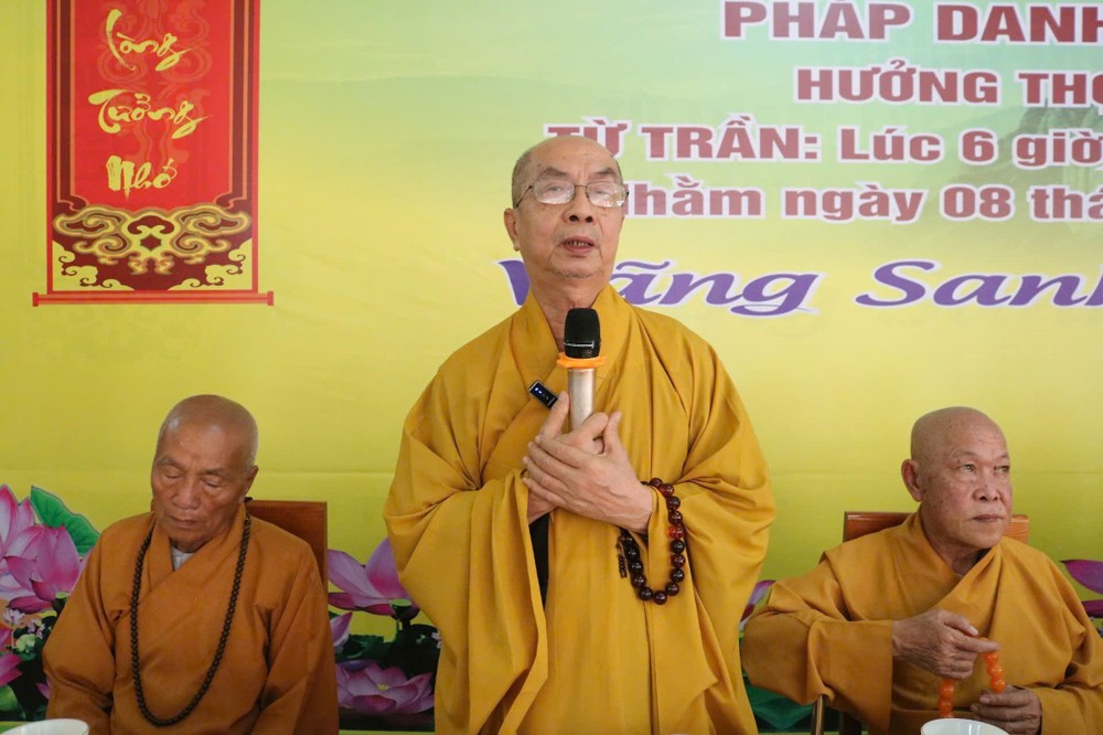 Thay mặt chư Tôn đức Ban chứng minh, HT.Thích Nhựt Tấn - Ủy viên Thường trực HĐTS, Chứng minh BTS GHPGVN tỉnh Vĩnh Long ban đạo từ tán thán sự hiếu đạo của toàn thể tang gia hiếu quyến. Hòa thượng nhấn mạnh: Trong tinh thần hiếu đạo đó, chúng ta đã hiểu Đức Phật có dạy rằng "Tâm hiếu là tâm Phật, Hạnh hiếu là hạnh Phật" cho nên toàn thể liệt quý vị đã thực hành hạnh hiếu đó là cần cầu Tam bảo, noi theo gương chí hiếu Mục Kiền Liên tôn giả. Trong suốt 49 ngày qua sau khi Cụ bà mất, toàn thể gia đình tang gia hiếu quyến đã mất mát một điểm tựa lớn nhất trong cuộc đời, giờ đây chúng ta mới thấm nhuận "Có mất mát mới thấy lòng trống rỗng, có xa nhau mới thấy nổi cô đơn", Cụ đã ra đi theo định luật vô thường mà Đức Phật đã dạy "Sanh ký tứ quy vô thường định luật", chúng ta là người Phật tử đã hiểu được tất cả chân lý đó, nên quý vị đã tạm gác lại nỗi mất mát đau thương của mình.