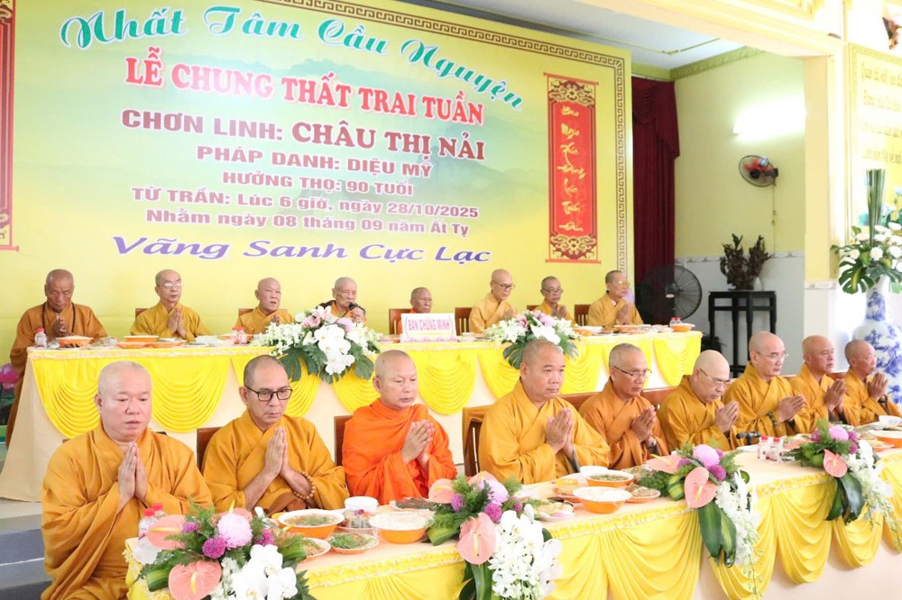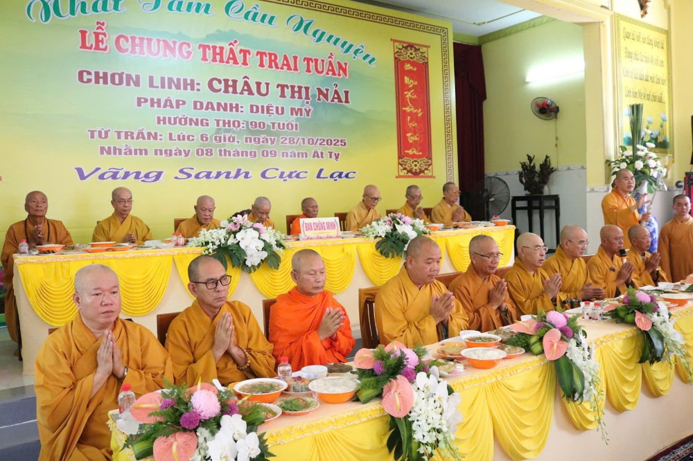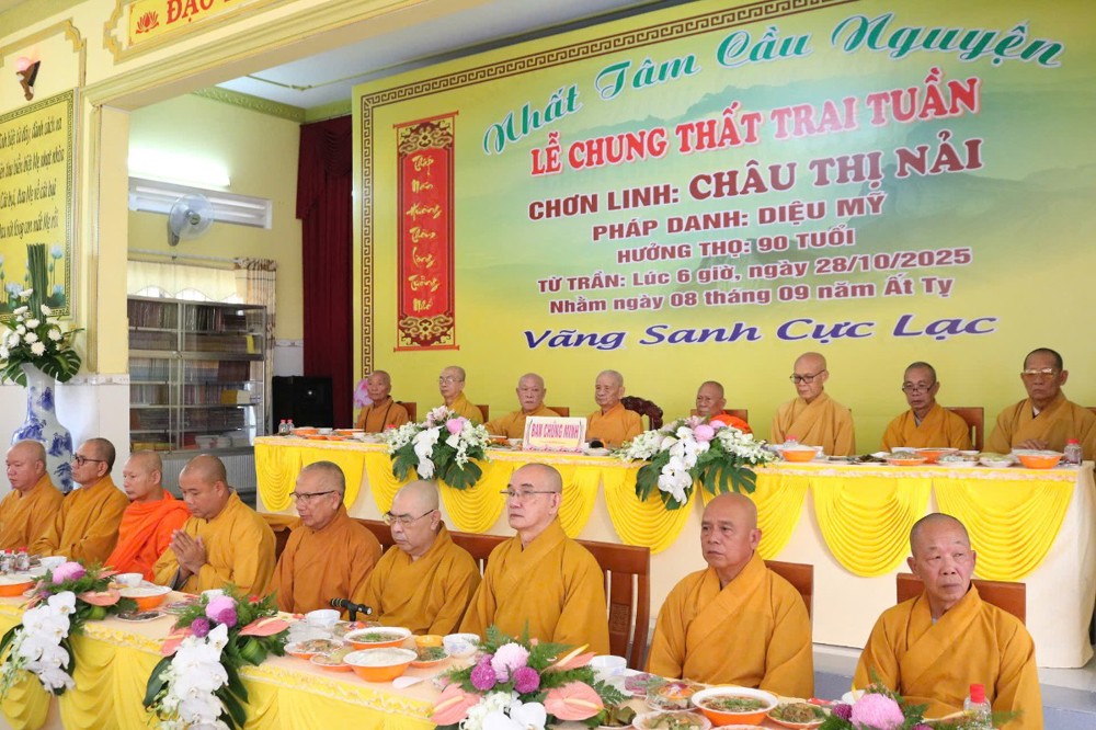 PSO - Sáng ngày 15/12/2025 (nhằm ngày 26/10 năm Ất Tỵ) tại chùa Phước Tường (xã Phong Thạnh, tỉnh Vĩnh Long) HT.Thích Trí Minh - Ủy viên HĐTS, Phó Trưởng ban Thường trực BTS GHPGVN tỉnh Vĩnh Long, Trụ trì chùa Phước Tường cùng tang gia hiếu quyến đã long trọng tổ chức Lễ Chung thất trai tuần Chơn linh cụ bà Châu Thị Nải (pháp danh Diệu Mỹ) là Thân mẫu của Hòa thượng Trụ trì, từ trần vào lúc 6 giờ ngày 28/10/2025, hưởng thọ 90 tuổi.