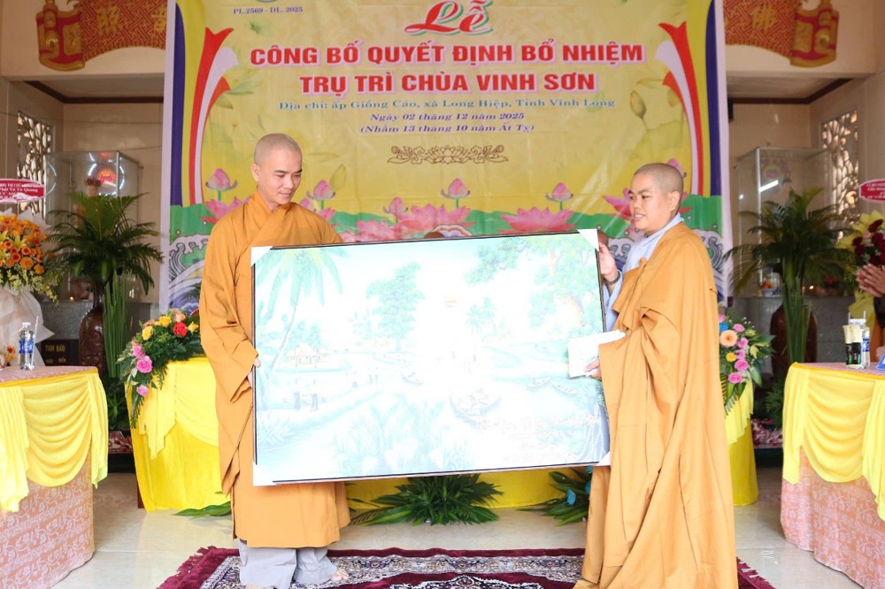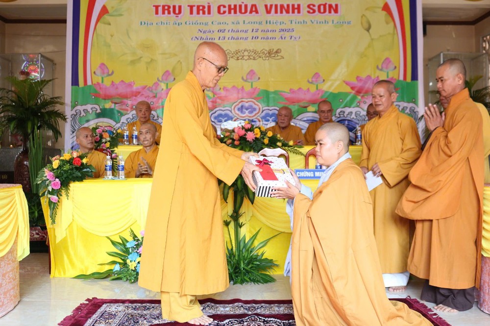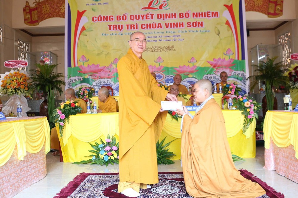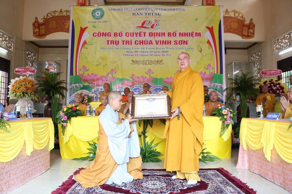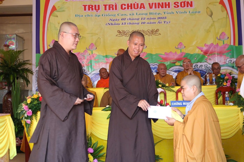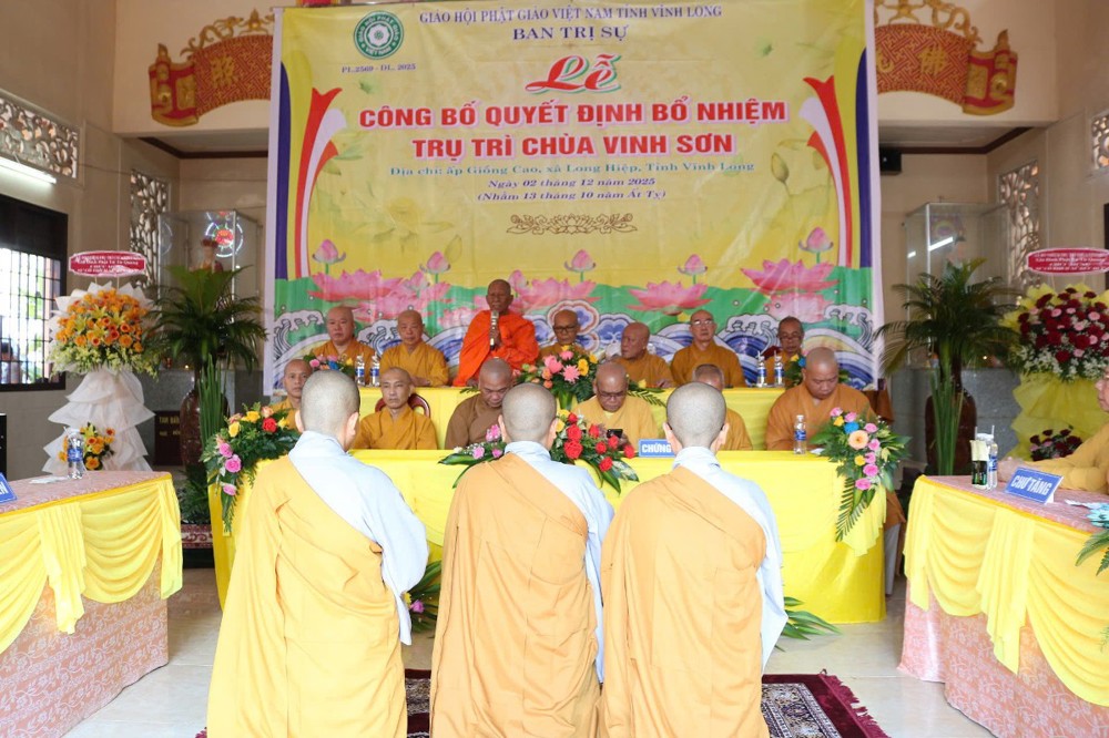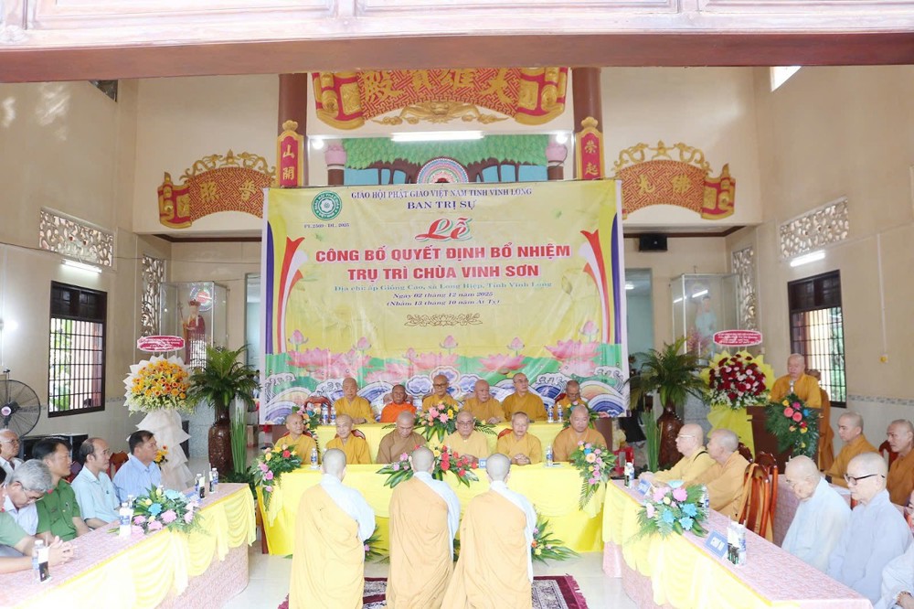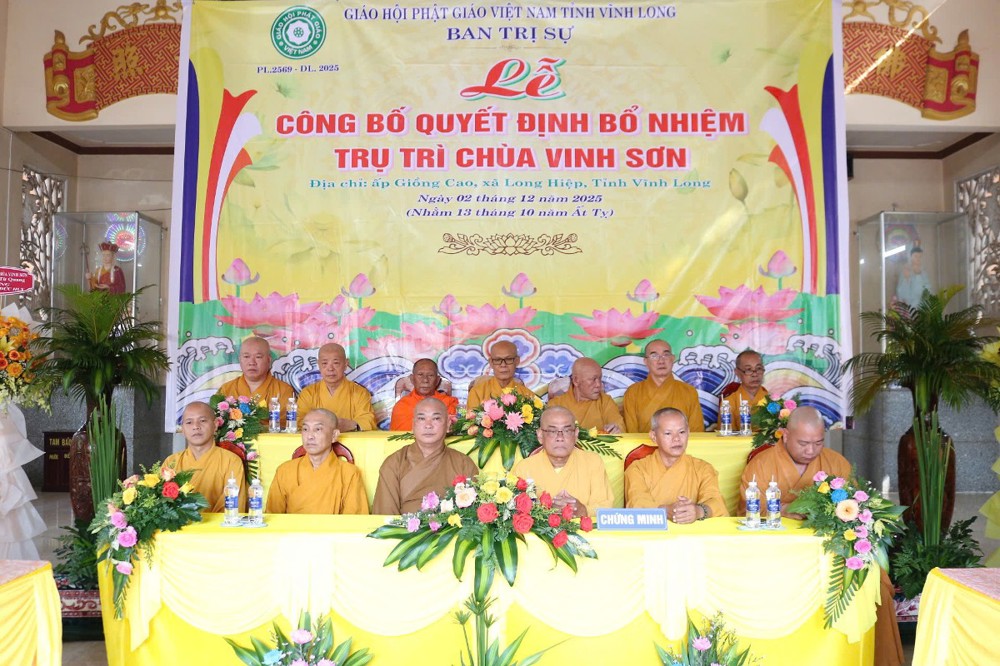 Tại buổi lễ, sau phần nghi thức, TT.Thích Tâm Khiết - Phó Trưởng ban kiêm Chánh Thư ký BTS GHPGVN tỉnh Vĩnh Long công bố Quyết định số 211/QĐ-BTS ngày 10/11/2025 về việc bổ nhiệm SC.Thích Nữ Đức Huy (thế danh Trương Thị Tuyết Liên), sinh năm 1982, làm Trụ trì chùa Vinh Sơn, ấp Giồng Cao, xã Long Hiệp, tỉnh Vĩnh Long.