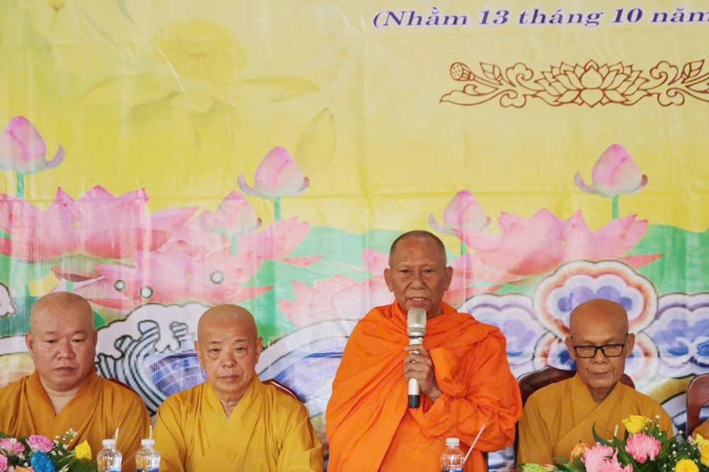 Ban đạo từ tại buổi lễ, HT.Thạch Sok Xane - Phó Chủ tịch HĐTS, Trưởng BTS GHPGVN tỉnh Vĩnh Long thông tin sơ lược tổng số các tự viện trên địa bàn tỉnh Vĩnh Long sau sáp nhập, Hòa thượng Trưởng BTS cũng gửi lời chúc mừng đến Sư cô tân Trụ trì chùa Vinh Sơn. Qua đó, Hòa thượng sách tấn SC.Thích Nữ Đức Huy tân Trụ trì phải có trách nhiệm thay mặt Giáo hội quản lý, điều hành các hoạt động Phật sự và hướng dẫn Phật tử sinh hoạt, tu học tại chùa Vinh Sơn. Phải có sự liên kết chặt chẽ giữa Giáo hội, kết nối cùng chính quyền địa phương các cấp, Phật tử chung tay làm việc thiện, xây dựng đời sống văn hóa, đạo đức nơi xóm làng quê hương.