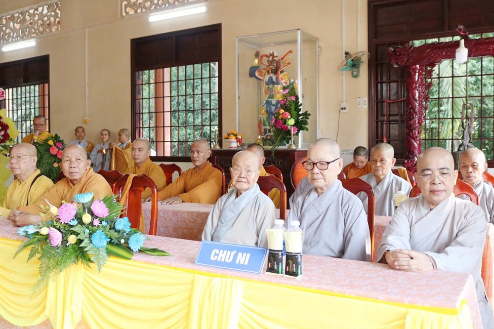 Chứng minh, tham dự buổi lễ có HT.Thích Viên Minh, HT.Thích Tâm Linh - đồng Chứng minh BTS GHPGVN tỉnh Vĩnh Long; HT.Thạch Sok Xane - Phó Chủ tịch HĐTS, Trưởng BTS kiêm Trưởng ban Tăng sự GHPGVN tỉnh Vĩnh Long; HT.Thích Trí Minh, TT.Thích Lệ Lạc - đồng Ủy viên HĐTS, Phó Trưởng ban Thường trực BTS, Phó Thường trực ban Tăng sự GHPGVN tỉnh; HT.Thích Huệ Pháp - Ủy viên HĐTS, Phó Trưởng BTS kiêm Phó ban Tăng sự GHPGVN tỉnh; TT.Thích Tâm Khiết - Phó Trưởng ban kiêm Chánh Thư ký BTS GHPGVN tỉnh; TT.Thích Phước Hạnh, TT.Thích Minh Độ - đồng Phó trưởng BTS GHPGVN tỉnh; ĐĐ.Thích Huệ Thắng - Phó Trưởng ban kiêm Trưởng ban Kiểm soát GHPGVN tỉnh; ĐĐ.Thích Minh Trí - Phó Thư ký kiêm Phó chánh Văn phòng Thường trực BTS GHPGVN tỉnh; ĐĐ.Thích Minh Hải - Ủy viên Thường trực kiêm Thủ quỹ BTS GHPGVN tỉnh;