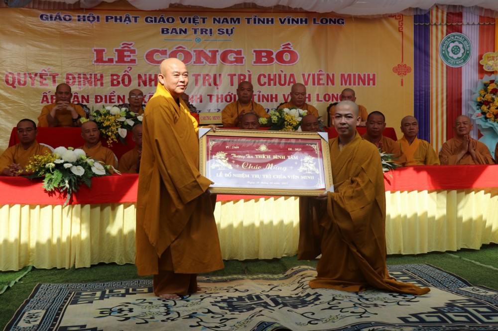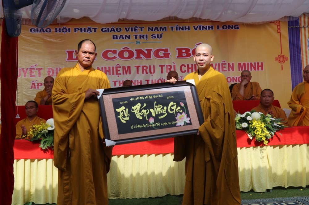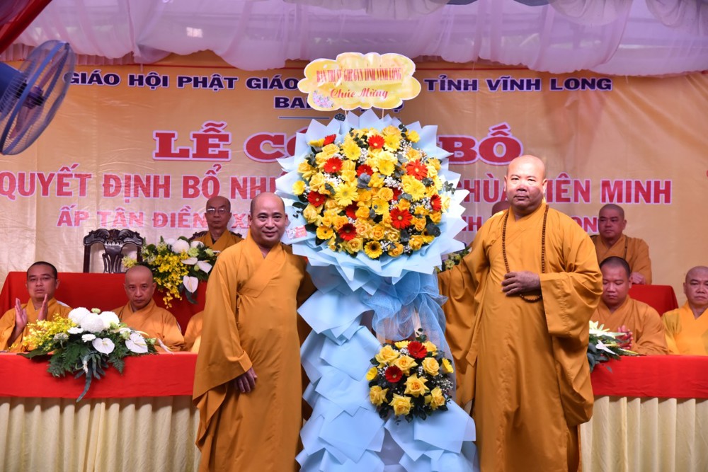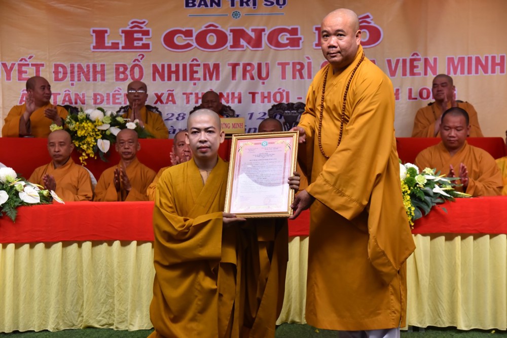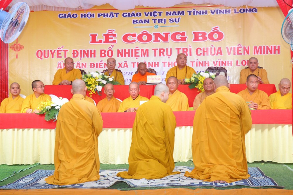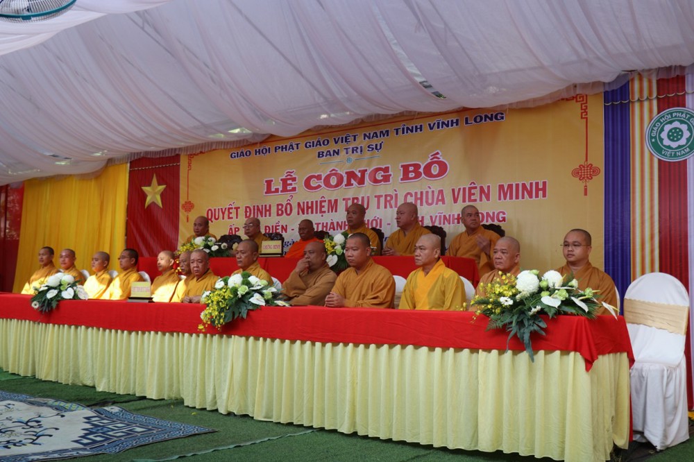 Tại buổi lễ, TT. Thích Tâm Khiết - Phó Ban kiêm Chánh Thư ký BTS GHPGVN tỉnh tuyên đọc Quyết định số 264/QĐ-BTS, ngày 26 tháng 12 năm 2025 của Ban Trị sự GHPGVN tỉnh Vĩnh Long bổ nhiệm ĐĐ.Thích Long Hoa đảm nhiệm trụ trì chùa Viên Minh, xã Thành Thới, tỉnh Bến Tre.