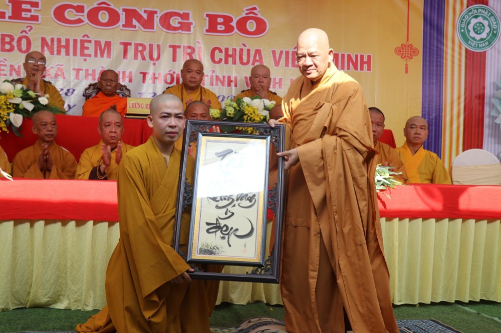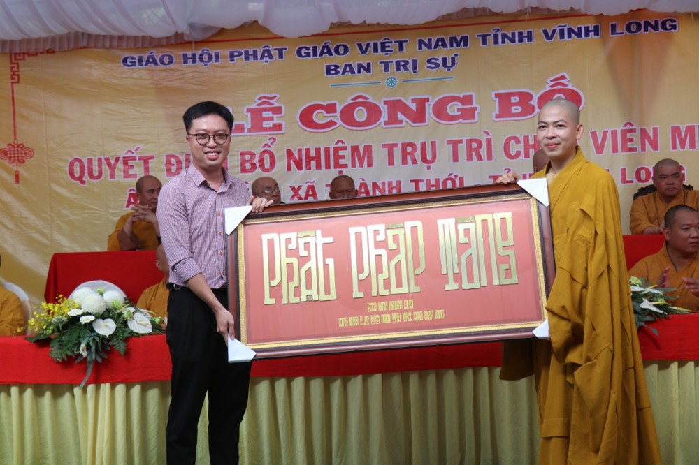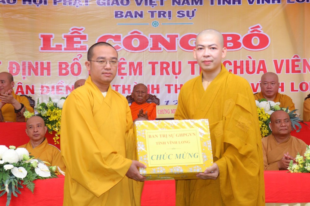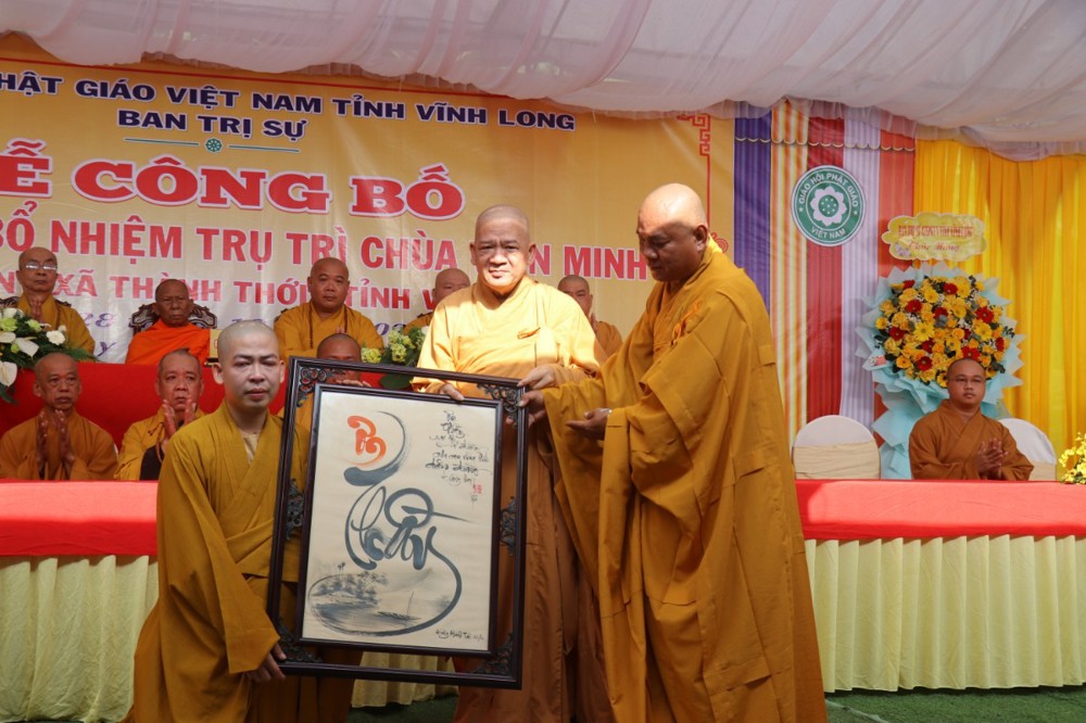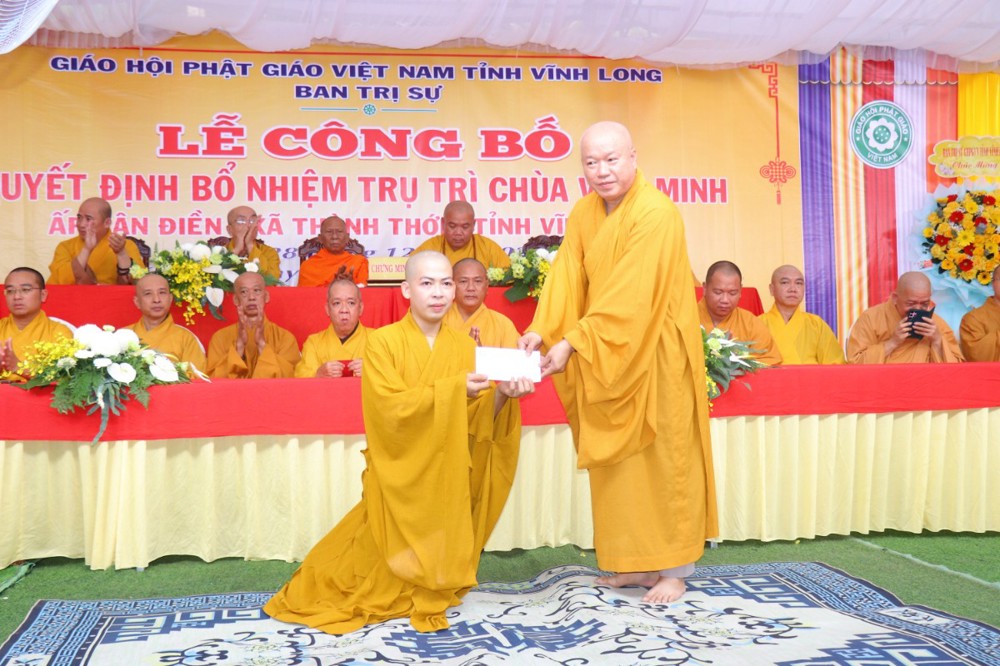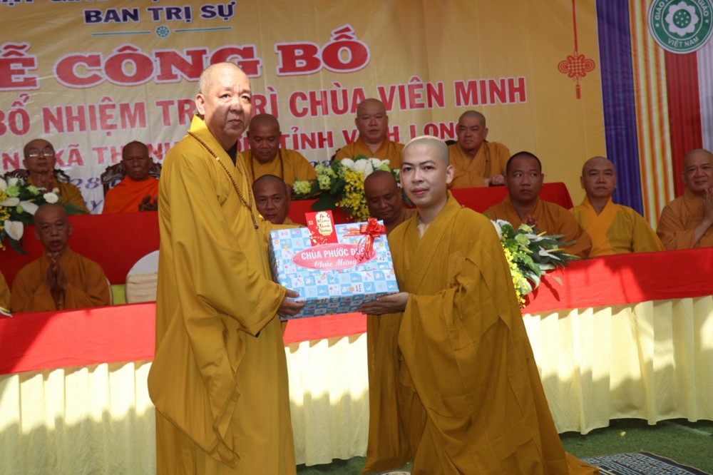 Tại buổi lễ, TT. Thích Tâm Khiết - Phó Ban kiêm Chánh Thư ký BTS GHPGVN tỉnh tuyên đọc Quyết định số 264/QĐ-BTS, ngày 26 tháng 12 năm 2025 của Ban Trị sự GHPGVN tỉnh Vĩnh Long bổ nhiệm ĐĐ.Thích Long Hoa đảm nhiệm trụ trì chùa Viên Minh, xã Thành Thới, tỉnh Bến Tre.