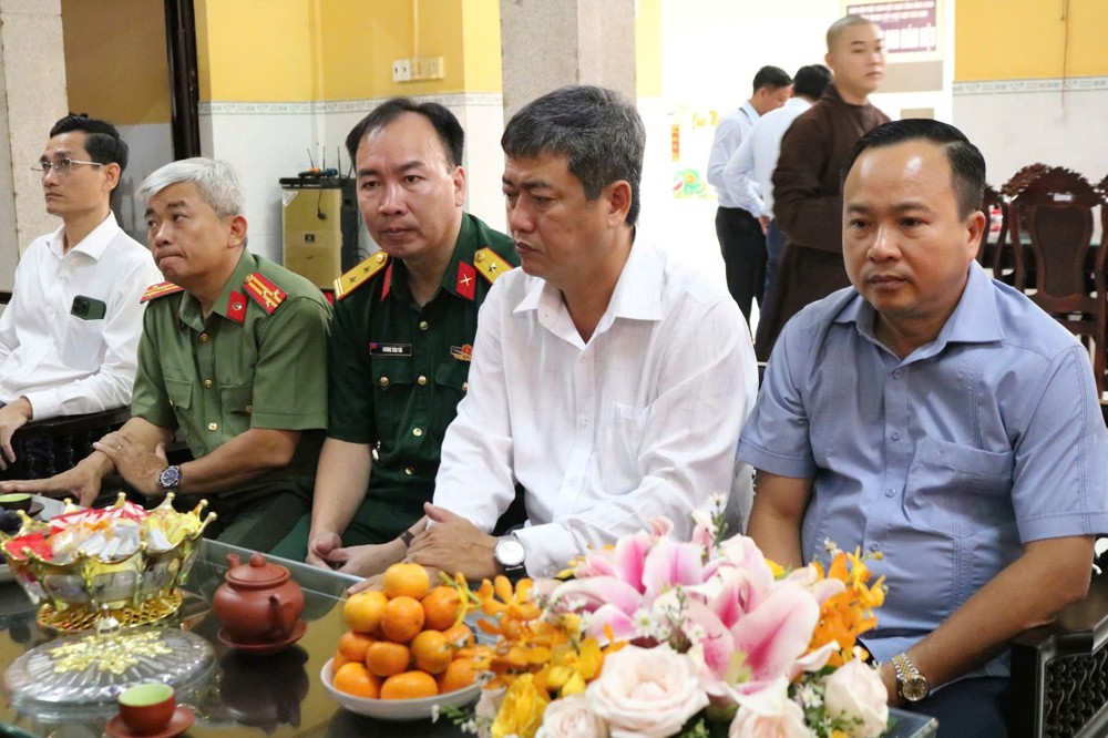 Đi cùng đoàn công tác có ông Kim Ngọc Thái - Phó Bí thư Tỉnh ủy, Chủ tịch UB MTTQVN tỉnh Vĩnh Long; ông Kiên Banh - Phó Chủ tịch UB MTTQVN tỉnh; bà Thạch Thị Thu Hà - Tỉnh ủy viên, Giám đốc Sở Dân tộc và Tôn giáo tỉnh; Đại tá Sơn Chí Hùng - Phó Giám đốc Công an tỉnh cùng đại diện lãnh đạo các sở ban, ngành tỉnh và P.Trà Vinh sở tại.