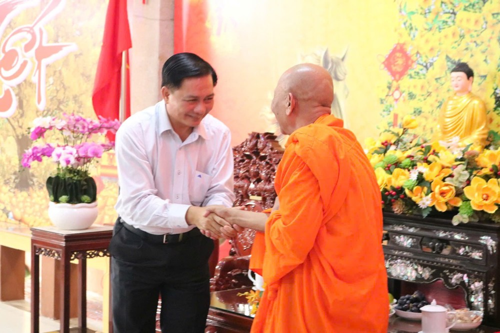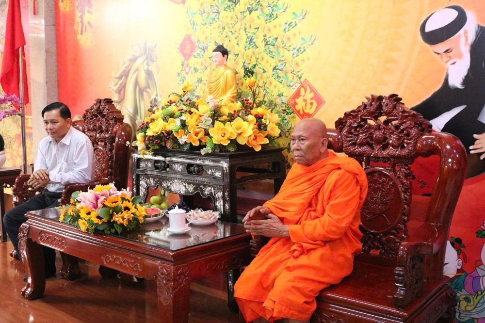 Thân mật tiếp Đoàn lãnh đạo Tỉnh ủy có Hòa thượng Thạch Sok Xane, Phó Chủ tịch HĐTS, Trưởng BTS GHPGVN tỉnh Vĩnh Long; Hòa thượng Thích Trí Minh; Thượng tọa Thích Trí Thọ - đồng Ủy viên HĐTS, Phó Trưởng ban Thường trực BTS GHPGVN tỉnh; Hòa thượng Thích Huệ Pháp - Ủy viên HĐTS, Phó Trưởng BTS GHPGVN tỉnh; Thượng tọa Thích Tâm Khiết - Phó Trưởng ban kiêm Chánh Thư ký BTS GHPGVN tỉnh; Thượng tọa Thích Minh Nhựt; Thượng tọa Thích Phước Hạnh; Thượng tọa Thích Phước Nguyên - đồng Phó Trưởng BTS GHPGVN tỉnh; Đại đức Thích Huệ Thắng - Phó Trưởng BTS kiêm Trưởng ban Kiểm soát GHPGVN tỉnh, chư vị Phó Trưởng ban cùng chư Tôn đức trong Ban Thường trực BTS GHPGVN tỉnh.