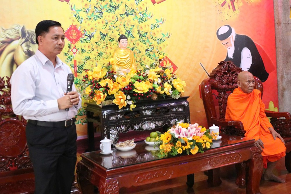 Tại buổi gặp gỡ, nhân dịp Tết cổ truyền Chôl Chnăm Thmây năm 2026 của đồng bào dân tộc, ông Trần Văn Lâu - Ủy viên Ban chấp hành Trung ương Đảng, Bí thư Tỉnh ủy Vĩnh Long, xin thay mặt lãnh đạo Tỉnh ủy, HĐND, UBND, UB MTTQVN tỉnh kính chúc các vị Hòa thượng, Thượng tọa, Đại đức, chức sắc, chức việc đón Tết vui tươi, an lành và hạnh phúc.