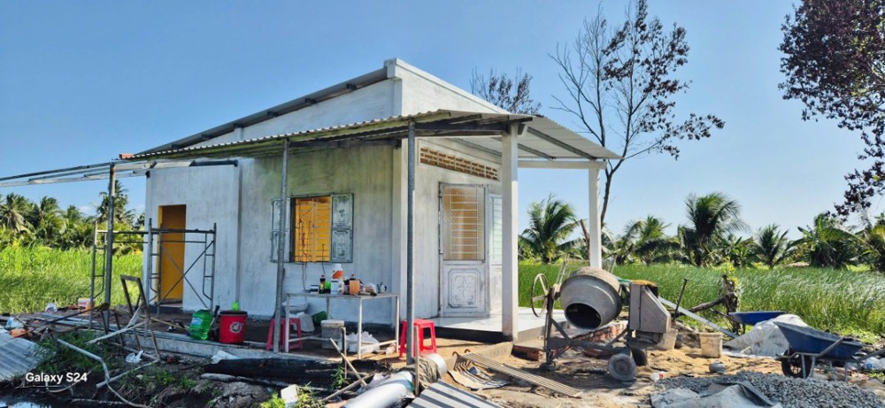 Ngôi nhà được xây dựng kiên cố với kích thước ngang 4,2m, dài 11m, có bếp và phần nhà phụ, tổng kinh phí 110 triệu đồng. Trong đó, Phật tử Hiếu Vân cùng gia đình (thuộc Hội Từ Tâm Charity Houston) hỗ trợ 70 triệu đồng; phần còn lại do chư Tăng Ni, Phật tử các chùa Khánh Thạnh, Hảo Tâm, Long Bửu, Phước Hiệp, cùng bà con và chính quyền địa phương đóng góp. Sau biến cố mất mát lớn, việc có được một mái nhà mới không chỉ giúp gia đình ổn định cuộc sống mà còn là nguồn an ủi, nâng đỡ tinh thần, giúp họ vững vàng vượt qua khó khăn, hướng đến tương lai tốt đẹp hơn.