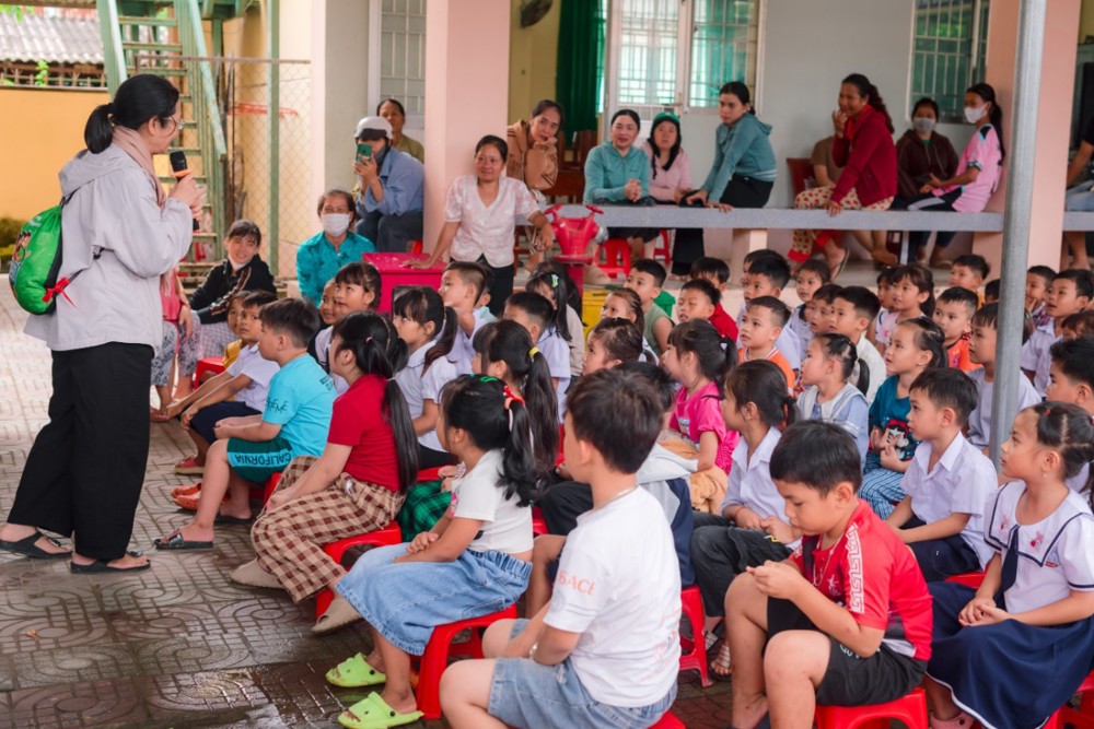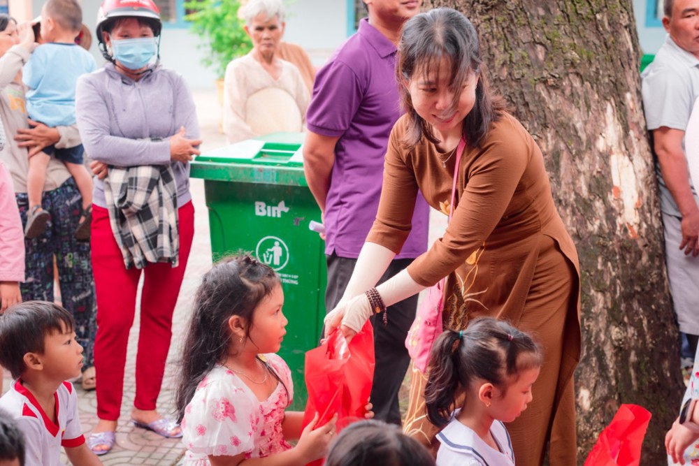 Tại đây đoàn đã trao tặng 160 phần quà đến tận tay các em thiếu nhi, mỗi phần quà gồm: lồng đèn, bánh kẹo… trị giá mỗi phần là 120 ngàn đồng.