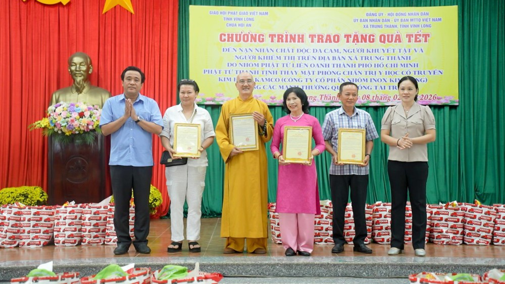Chương trình do Thượng tọa Thích Lệ Lạc – Ủy viên HĐTS, Phó Ban Thường trực Ban Trị sự GHPGVN tỉnh Vĩnh Long chủ trì, cùng sự tham gia của chư Tăng Ni, quý Phật tử và các mạnh thường quân, phối hợp với chính quyền địa phương trao tặng 200 phần quà Tết đến người khiếm thị, người khuyết tật và các hộ gia đình có hoàn cảnh khó khăn; đồng thời bàn giao 01 căn nhà Đại đoàn kết cho gia đình bà Nguyễn Thị Đẹp.