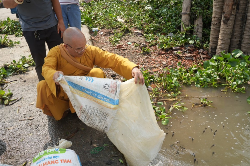Dịp này, đoàn cũng đã tổ chức lễ phóng sanh 1 tấn cá tại sông Cổ Chiên, lan tỏa tinh thần từ bi, hạnh nguyện không sát sinh theo giáo lý nhà Phật, đồng thời góp phần tái tạo nguồn lợi thủy sản và bảo vệ môi trường sinh thái.
