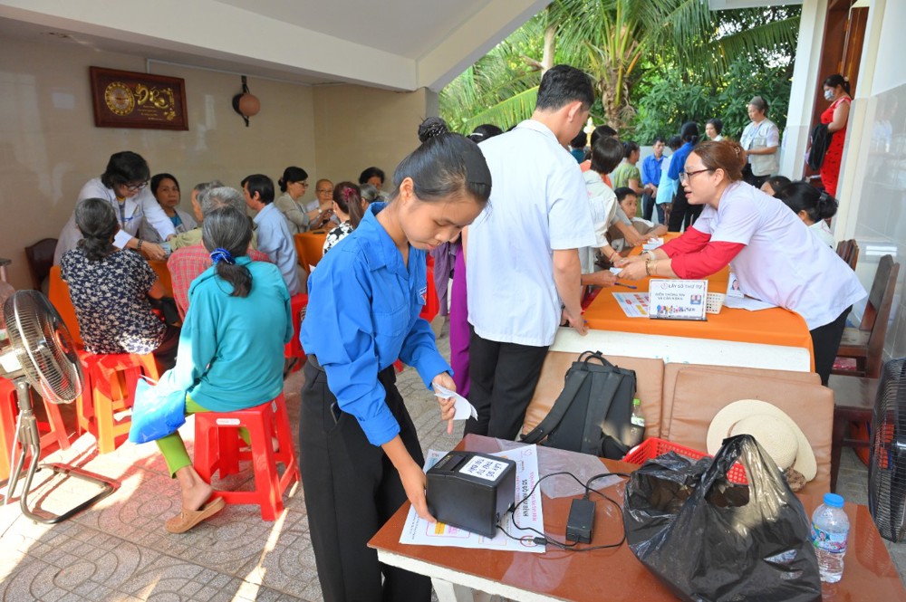 Không khí chương trình diễn ra trong sự trật tự, ấm áp và thấm đượm tinh thần sẻ chia. Nhiều người dân bày tỏ niềm vui và sự xúc động khi được tiếp cận các dịch vụ y tế chất lượng ngay tại địa phương. Sau khi hoàn tất thăm khám, bà con không chỉ nhận thuốc mà còn được các y bác sĩ tận tình tư vấn, giúp hiểu rõ hơn về tình trạng sức khỏe của bản thân cũng như cách sử dụng thuốc hiệu quả.