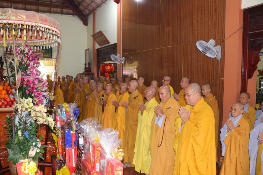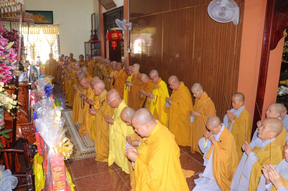 Trong không gian ấm áp, thanh tịnh nơi Tổ đình chốn thôn quê, trước tôn dung Cố Trưởng lão Hòa thượng, Chư Tôn đức Ban Trị sự GHPGVN tỉnh Vĩnh Long; chư giáo phẩm, Tăng Ni trụ trì các tự viện đã trang nghiêm vân tập, nhất tâm dâng hương tưởng niệm. Mỗi nén tâm hương được thắp lên là một lời tri ân sâu lắng, là sự tưởng nhớ thiết tha của người ở lại đối với bậc long tượng của Phật giáo Việt Nam, nguyện cầu Giác linh ngài cao đăng Phật quốc, viên mãn đạo quả.