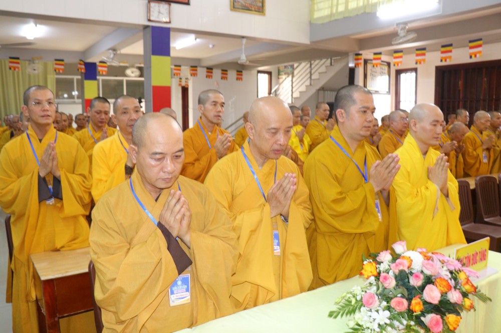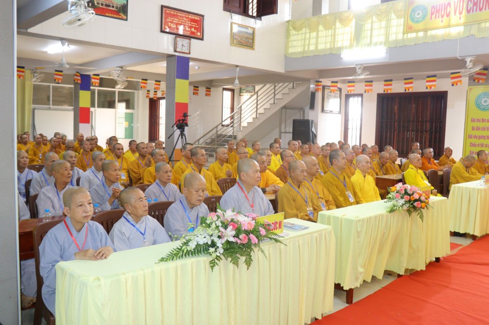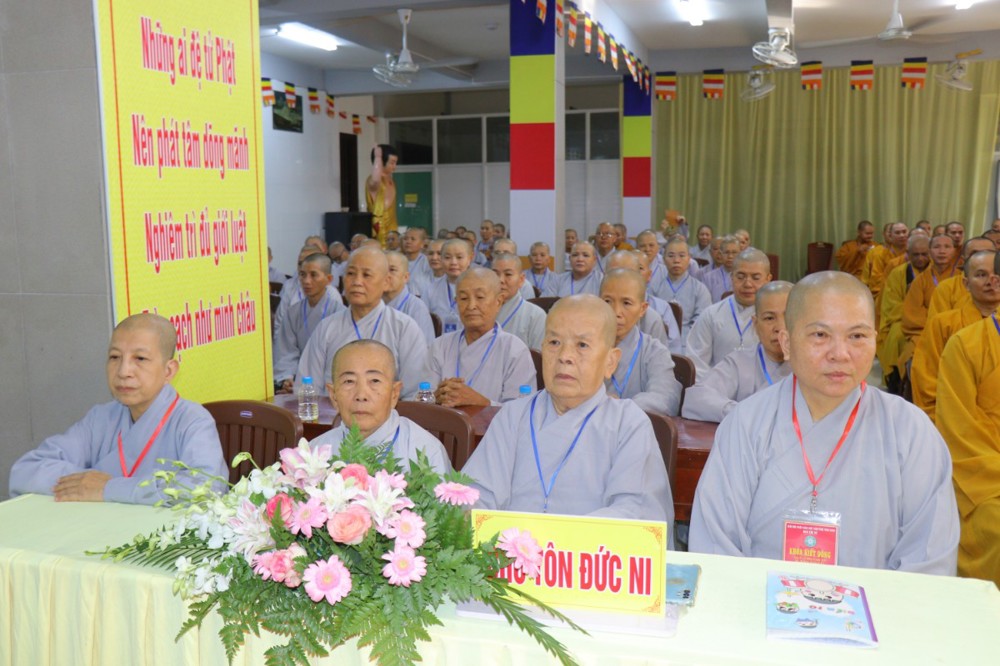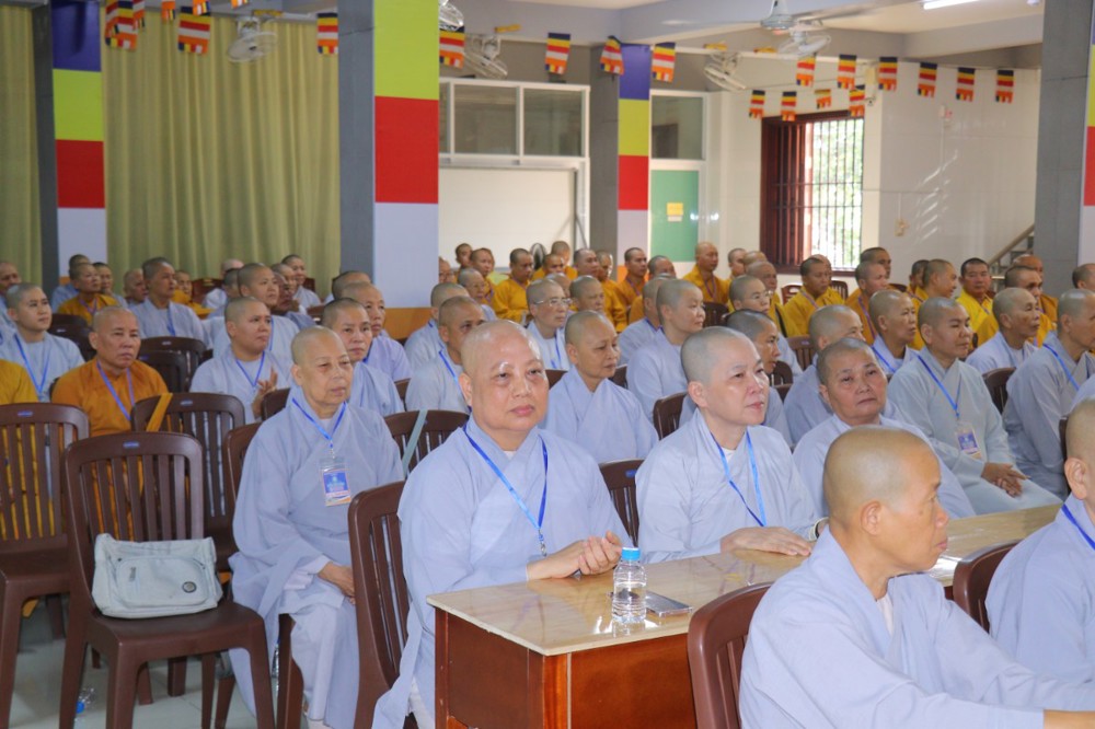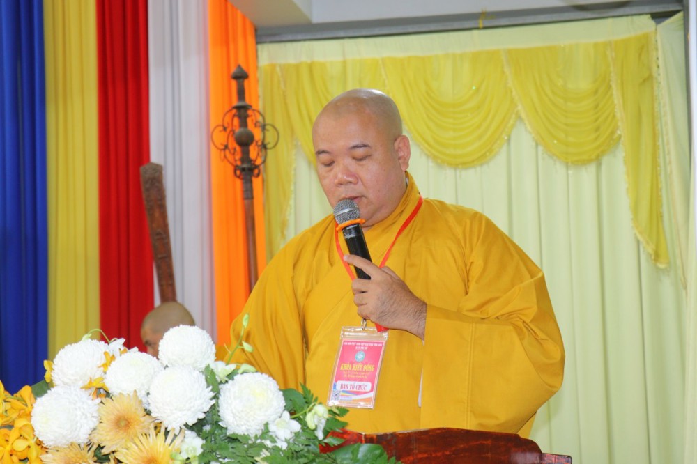 Thay mặt Ban Tổ chức, ĐĐ. Thích Đức Tín – Phó Thư ký kiêm Phó Văn phòng BTS GHPGVN tỉnh, đã báo cáo tổng kết Khóa Kiết Đông lần thứ III – năm 2025, diễn ra từ ngày 21 đến 26/11 - với 121 hành giả Tăng tại chùa Viên Minh (phường An Hội) và 83 hành giả Ni tại chùa Bạch Vân (phường Sơn Đông).