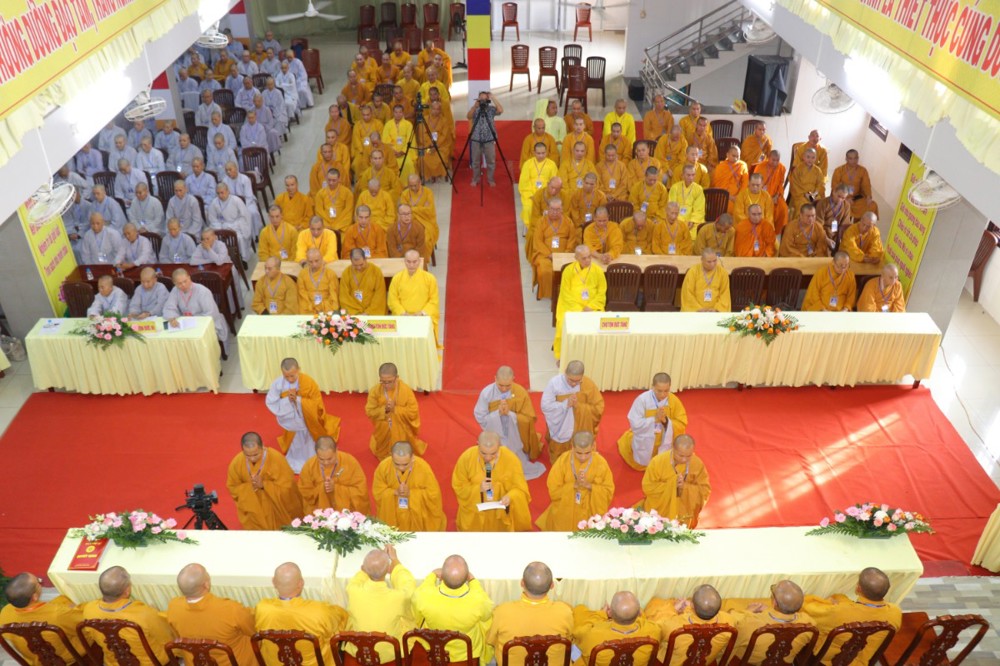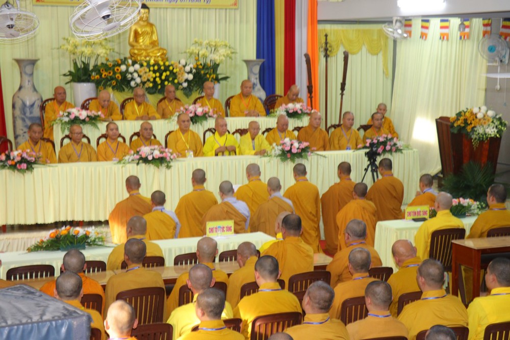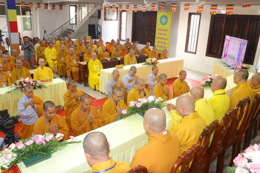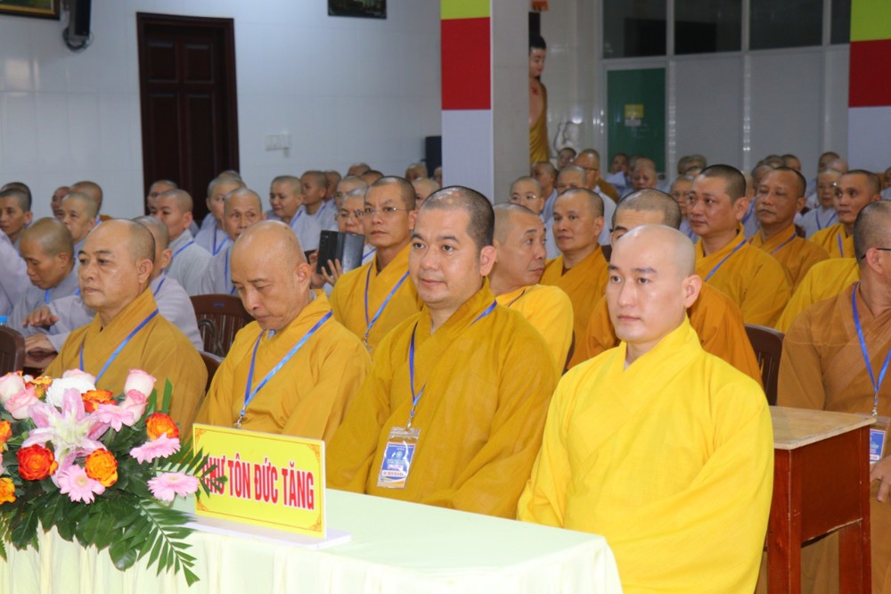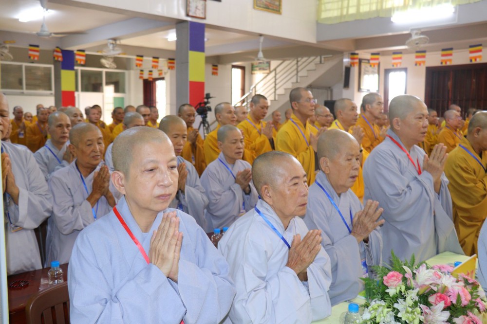 Thay mặt Ban Tổ chức, ĐĐ. Thích Đức Tín – Phó Thư ký kiêm Phó Văn phòng BTS GHPGVN tỉnh, đã báo cáo tổng kết Khóa Kiết Đông lần thứ III – năm 2025, diễn ra từ ngày 21 đến 26/11 - với 121 hành giả Tăng tại chùa Viên Minh (phường An Hội) và 83 hành giả Ni tại chùa Bạch Vân (phường Sơn Đông).