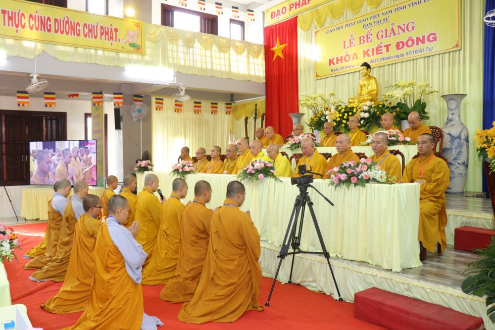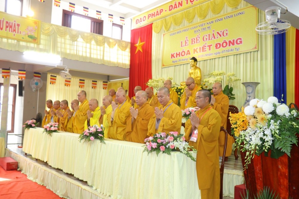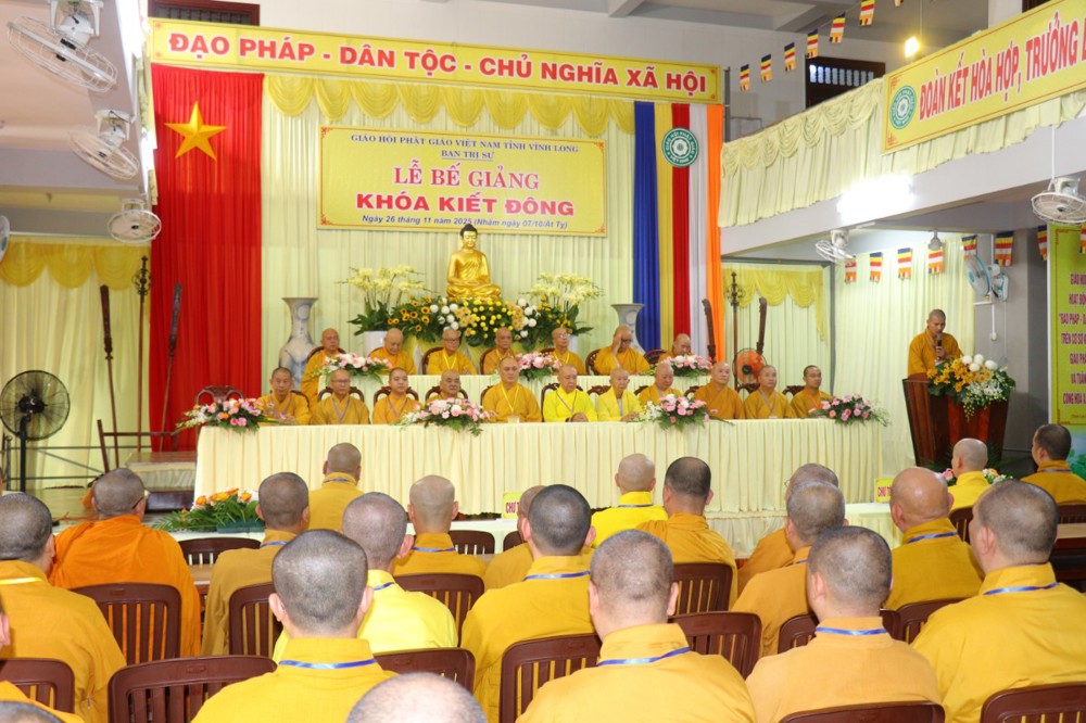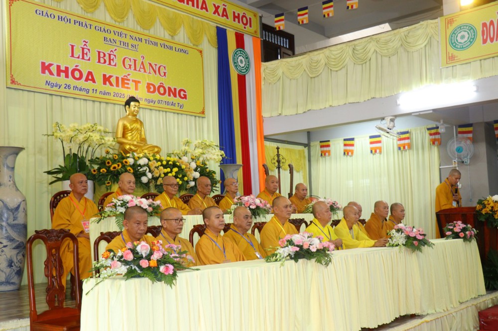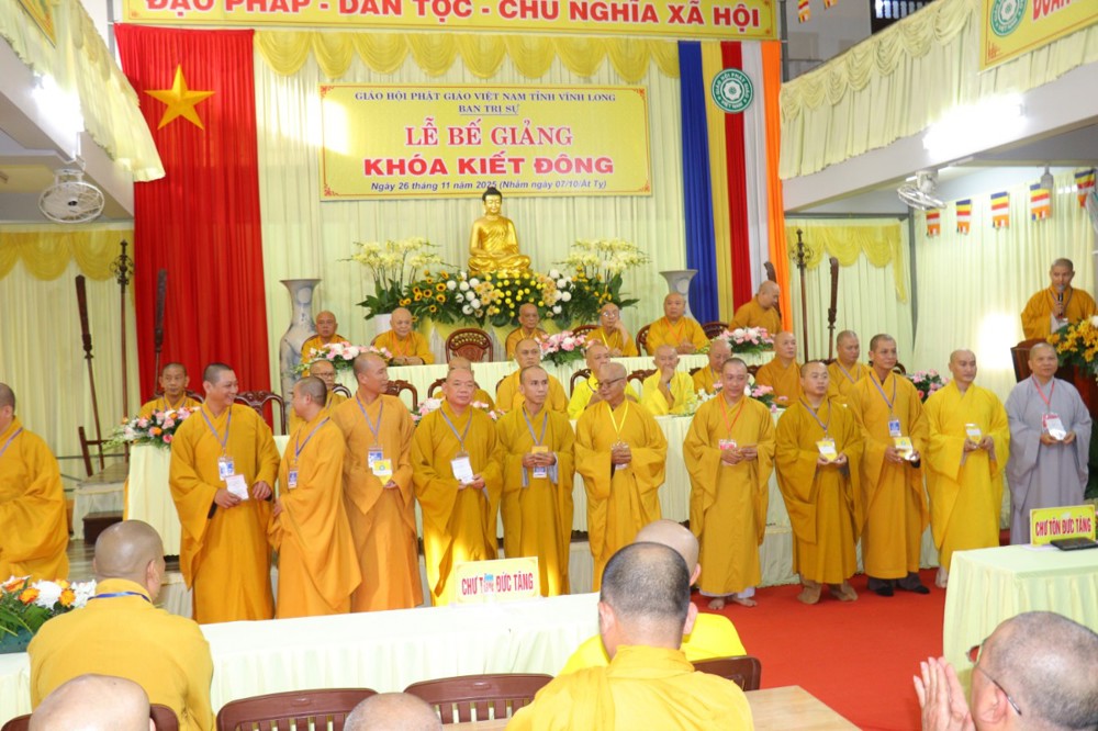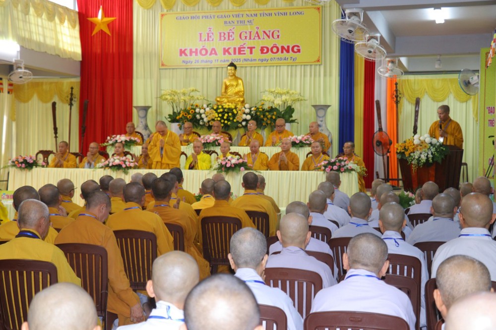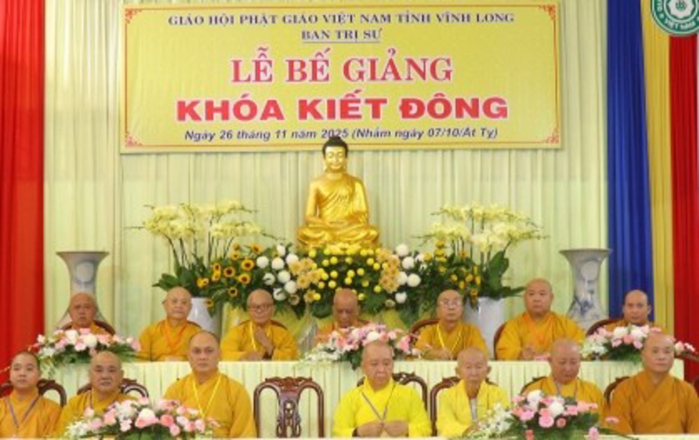 PSO – Chiều ngày 26/11/2025, Ban Trị sự GHPGVN tỉnh Vĩnh Long đã trang nghiêm tổ chức Lễ Bế giảng Khóa Kiết Đông lần thứ III, năm 2025 - Khóa tu đặc biệt dành cho chư Tôn đức Tăng Ni trụ trì (Khu vực tỉnh Bến Tre cũ), sau sáu ngày đồng tu, đồng học, trao đổi kinh nghiệm tu tập, tiếp thu kiến thức công tác Phật sự và công tác quản lý tự viện.