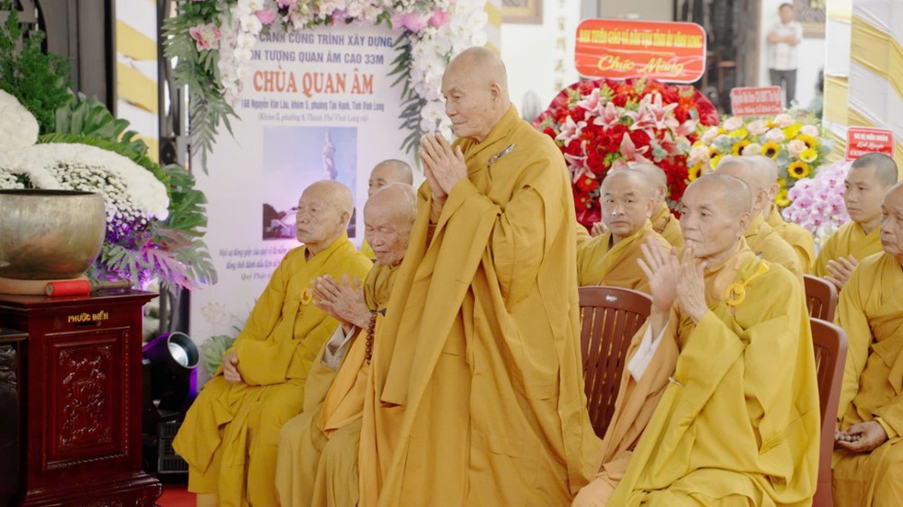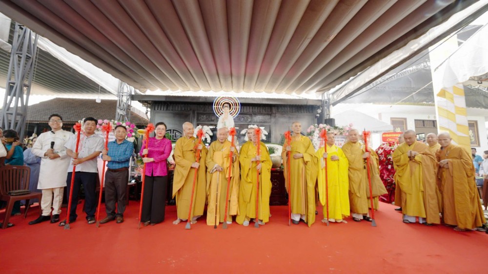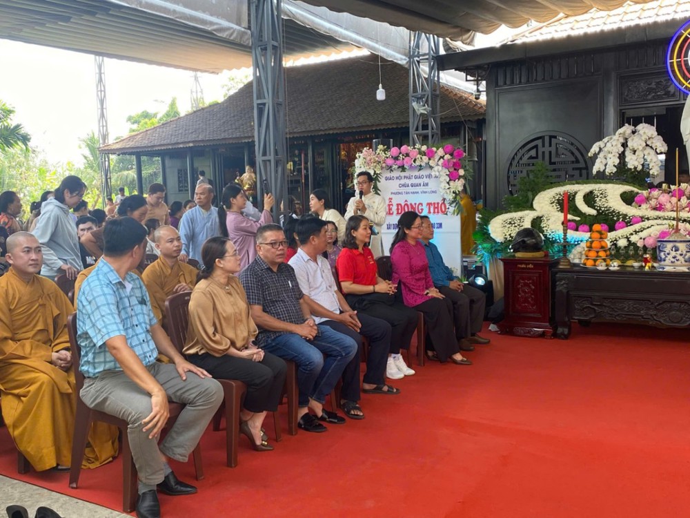Chứng minh và tham dự buổi lễ có: Trưởng lão Hòa thượng Thích Như Tước, Ủy viên Thường trực Hội đồng Chứng minh, Chứng minh Ban Trị sự GHPGVN tỉnh Vĩnh Long; Trưởng lão Hòa thượng Thích Bửu Thành, Thành viên Hội đồng Chứng minh, Chứng minh Ban Trị sự GHPGVN tỉnh An Giang; Hòa thượng Thích Thiện Thanh, Chứng minh Ban Trị sự GHPGVN tỉnh; Hòa thượng Thích Thiện Trí, Phó Ban Trị sự kiêm Trưởng ban Pháp chế GHPGVN tỉnh; Đại đức Thích Tánh Bình, Phó Ban Trị sự kiêm Trưởng ban Phật giáo Quốc tế GHPGVN tỉnh; Thượng tọa Thích Long Vân, Phó Ban Trị sự GHPGVN tỉnh; Đại đức Thích Minh Tuấn, Phó Thư ký - Chánh Văn phòng GHPGVN tỉnh; Thượng tọa Thích Trí Thiện, Phó Thư ký Ban Trị sự GHPGVN tỉnh; Đại đức Thích Từ Minh, Trụ trì chùa Quan Âm; cùng chư Tôn đức Tăng Ni các tự viện đồng về tham dự.