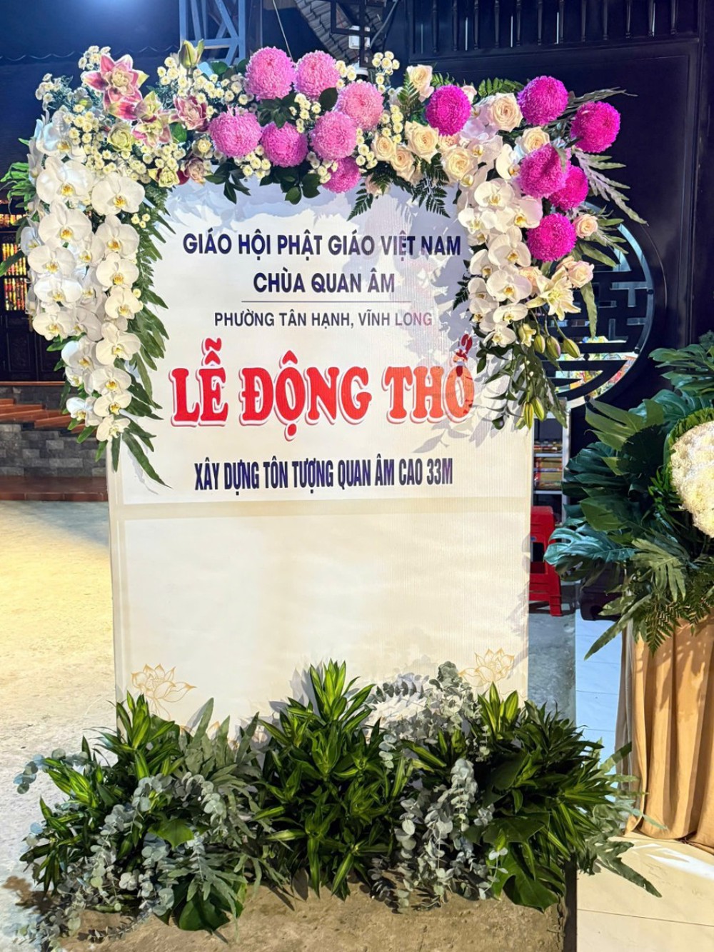 Theo Ban Tổ chức, công trình tôn tượng Bồ Tát Quán Thế Âm cao 33m được xây dựng trong khuôn viên chùa Quan Âm, nhằm kiến tạo không gian sinh hoạt tâm linh trang nghiêm, đáp ứng nhu cầu tín ngưỡng của Phật tử và người dân địa phương. Công trình được kỳ vọng sẽ trở thành điểm nhấn kiến trúc – tâm linh tiêu biểu của tỉnh Vĩnh Long trong tương lai.