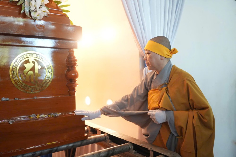 Sau đó, môn đồ pháp quyến cung thỉnh linh mô, y bát và di ảnh của Ân sư; đông đảo chư Tôn đức Tăng Ni cùng hàng Phật tử thành kính phụng tống kim quan cố Ni trưởng rời chùa Thiên Phước, di quan về Sơn trang Tiên Cảnh (TP.Cần Thơ) để cử hành lễ trà-tỳ theo nghi thức Phật giáo.