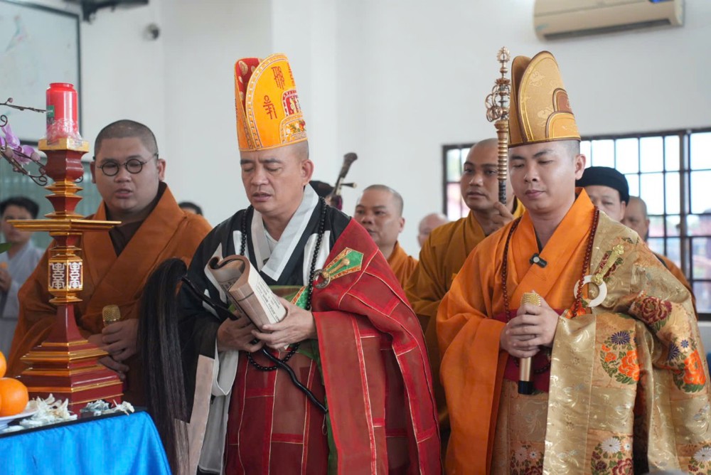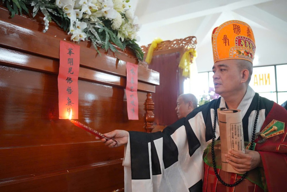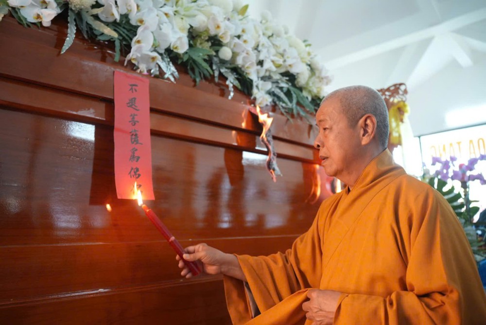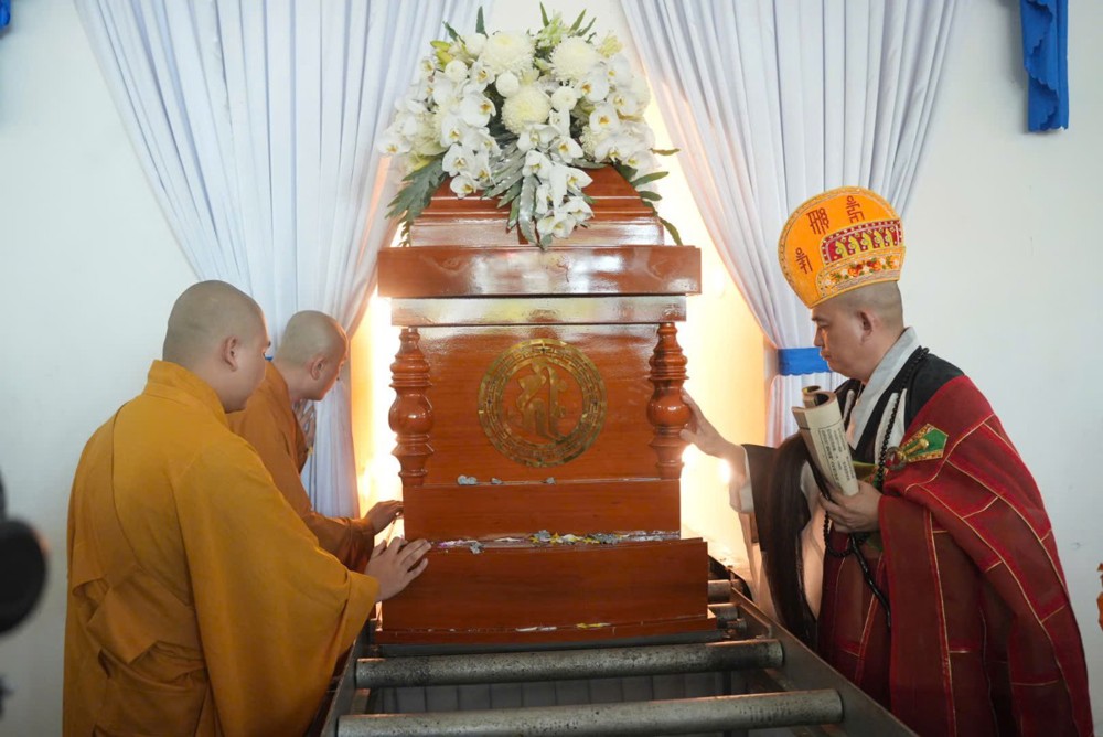 Trước giờ phụng tống kim quan, Thượng tọa Thích Phước Cường sám chủ, đã cung tuyên pháp ngữ và cử hành nghi thức phất trần theo nghi lễ thiền môn, tiễn biệt bậc trưởng lão Ni đã viên mãn đạo nghiệp, thuận theo lẽ vô thường an nhiên xả báo.