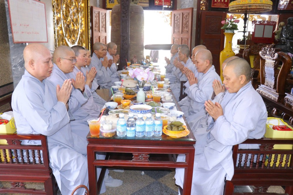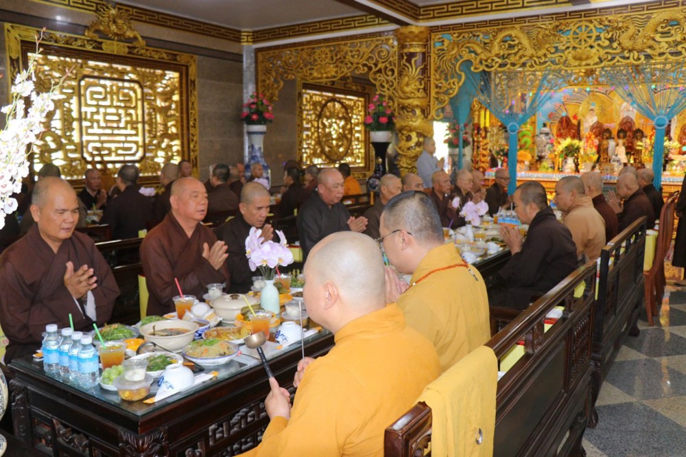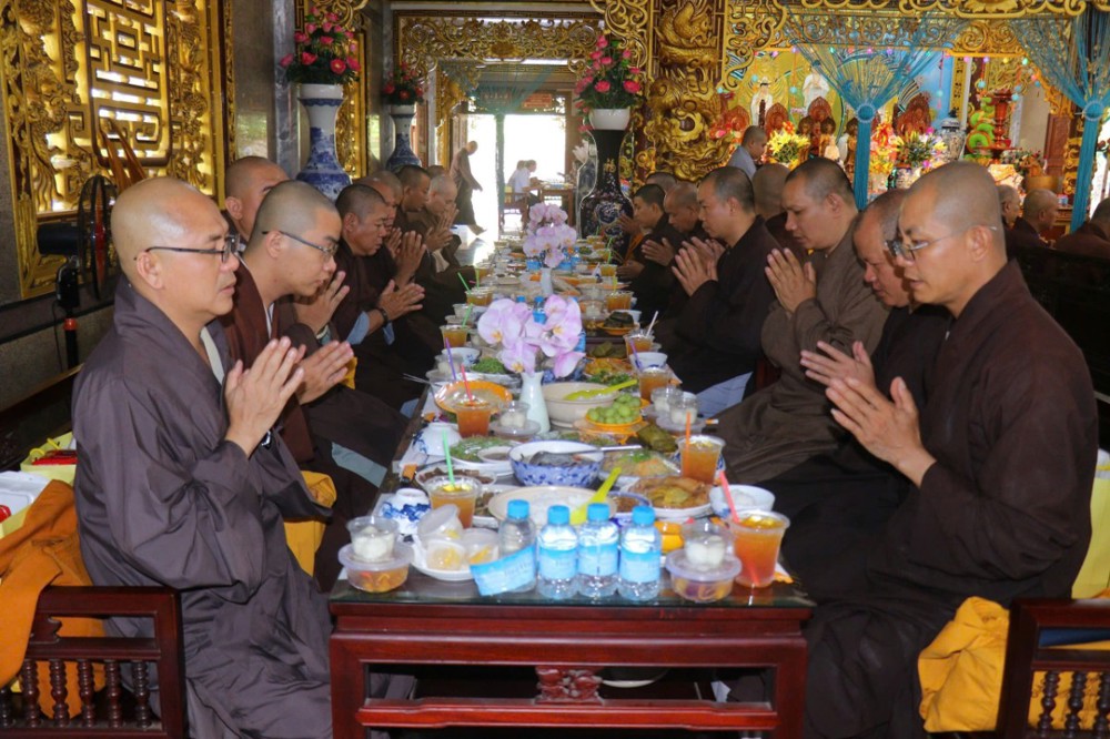 Sau phần nghi lễ tưởng niệm, với tấm lòng chí thành chí kính, Chư Tăng chùa Vĩnh An đã cung thỉnh Chư Tôn thiền đức Tăng Ni quang lâm giảng đường thọ trai, đồng thời thành kính dâng cúng trai tăng, tạo phước lành, hồi hướng công đức lên giác linh chư vị tiền bối Hòa thượng nhân ngày hiệp kỵ. Đây cũng là pháp duyên thù thắng để hàng Phật tử gieo trồng thiện căn, tăng trưởng phước báu trên con đường tu học.
