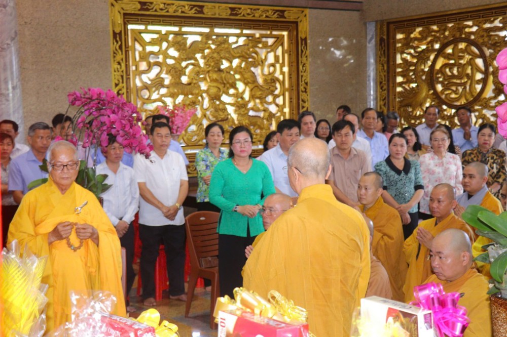 Quang lâm chứng minh buổi lễ có: HT. Thích Lệ Linh – Thành viên HĐCM TW, Chứng minh BTS GHPGVN tỉnh Vĩnh Long; HT. Thích Nhựt Tấn – UV thường trực HĐTS, Chứng minh BTS GHPGVN tỉnh Vĩnh Long; TT. Thích Huệ Đức – Phó BTS PHPGVN tỉnh; TT. Thích Thạnh Mẫn – Phó BTS, Trưởng Ban Nghi lễ Phật giáo tỉnh; TT. Thích Trung San – UV Thường trực BTS, Trưởng Ban Giáo dục GHPGVN tỉnh, Hiệu trưởng Trường Trung cấp Phật học tỉnh; TT. Thích Huệ Thọ - UV thường trực BTS GHPGVN tỉnh; NT. Thích nữ Như Chơn, NT. Thích nữ Như Quang – Đồng Chứng minh PBNG tỉnh; NS. Thích nữ Như Uyên – Phó Thường trực PBNG tỉnh; NS. Thích nữ Như Nguyệt – Trưởng Ban Kinh tế - Tài chính GHPGVN tỉnh Vĩnh Long; cùng Chư Tôn thiền đức BTS PG các huyện, thành phố, quý Ni trưởng, Chư Tôn đức Ni PBNG tỉnh, Chư Tăng Ni trụ trì các tự viện; quý nam nữ Phật tử gần xa đồng về tham dự.