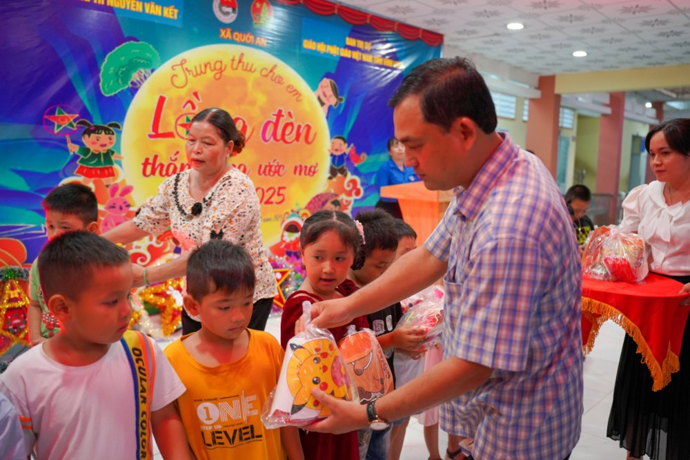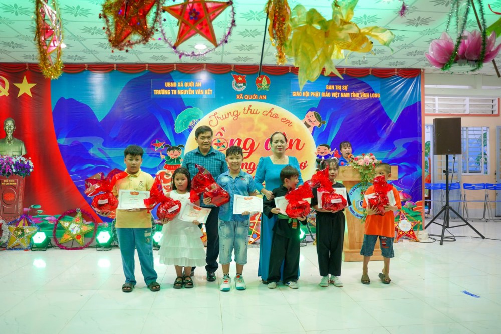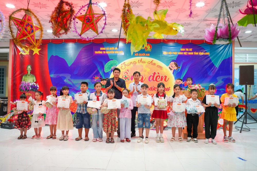 Dịp này, 2.500 phần quà Trung thu đã được trao đến các em thiếu nhi, mỗi phần trị giá 45 nghìn đồng với tổng kinh phí 112,5 triệu đồng. Mặc dù còn nhiều khó khăn sau khi sáp nhập các đơn vị hành chính, nhưng lãnh đạo xã Quới An đã phối hợp cùng Ban Trị sự GHPGVN tỉnh Vĩnh Long và tích cực vận động sự chung tay của các mạnh thường quân để mang đến cho các em thiếu nhi một mùa Trung thu thật ấm áp. Những món quà tuy giản dị nhưng chan chứa tình thương, là sự sẻ chia và khích lệ, giúp các em thêm động lực phấn đấu học tập, rèn luyện.