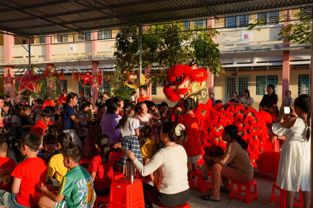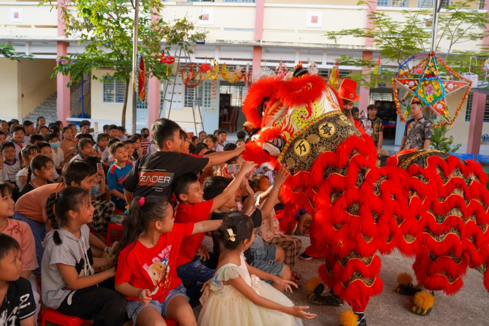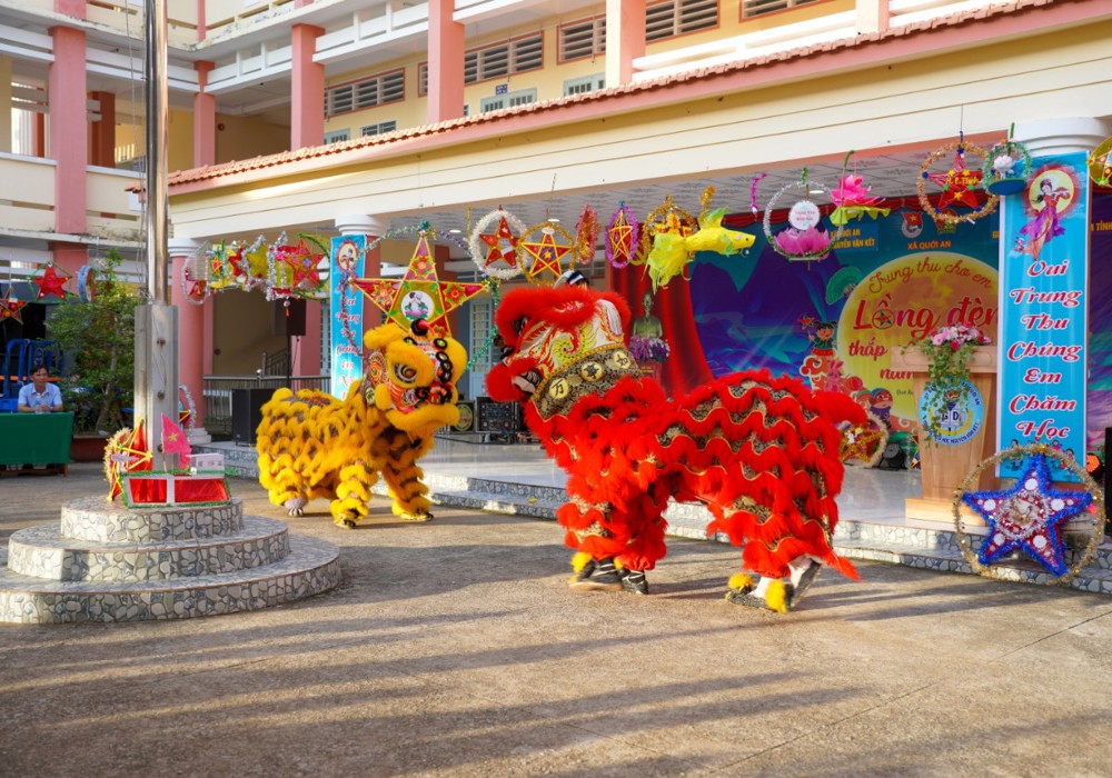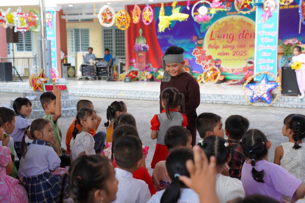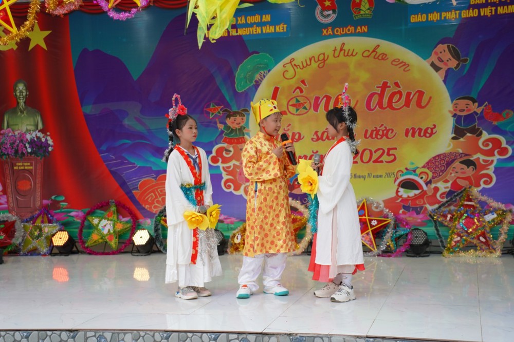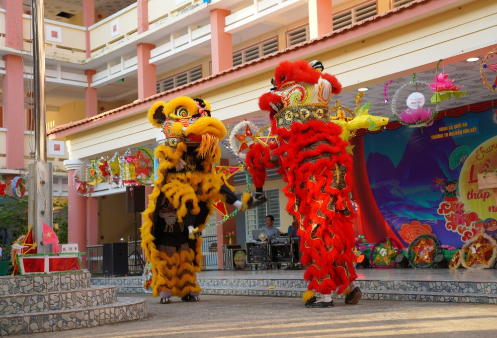 Không khí đêm hội diễn ra rộn ràng với màn múa lân sôi động, những tiết mục văn nghệ đặc sắc, hoạt cảnh “chú Cuội - chị Hằng” và phần rước đèn Trung thu truyền thống. Các em còn hào hứng tham gia trò chơi đố vui, vừa sôi động, vừa thêm hiểu biết về nét đẹp văn hóa dân gian.
