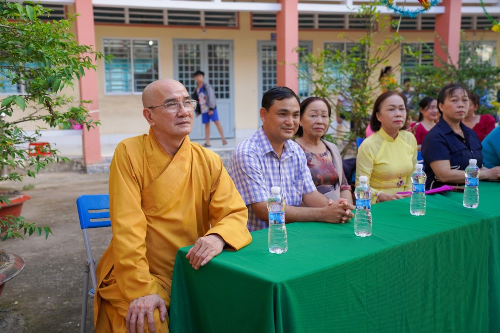 Buổi lễ vinh dự đón tiếp sự hiện diện của Thượng tọa Thích Lệ Lạc – Ủy viên HĐTS, Phó Trưởng ban Thường trực Ban Trị sự GHPGVN tỉnh Vĩnh Long; ông Nguyễn Văn Móm Em – Bí thư Đảng ủy, Chủ tịch UBND xã Quới An; ông Nguyễn Trung Tín – Ủy viên Ban Thường vụ Đảng ủy, Chỉ huy trưởng Ban Chỉ huy Quân sự xã Quới An; bà Tôn Thị Hằng – Bí thư Chi bộ, Hiệu trưởng trường Tiểu học Nguyễn Văn Kết; cùng đại diện các ban ngành, đoàn thể và quý mạnh thường quân.