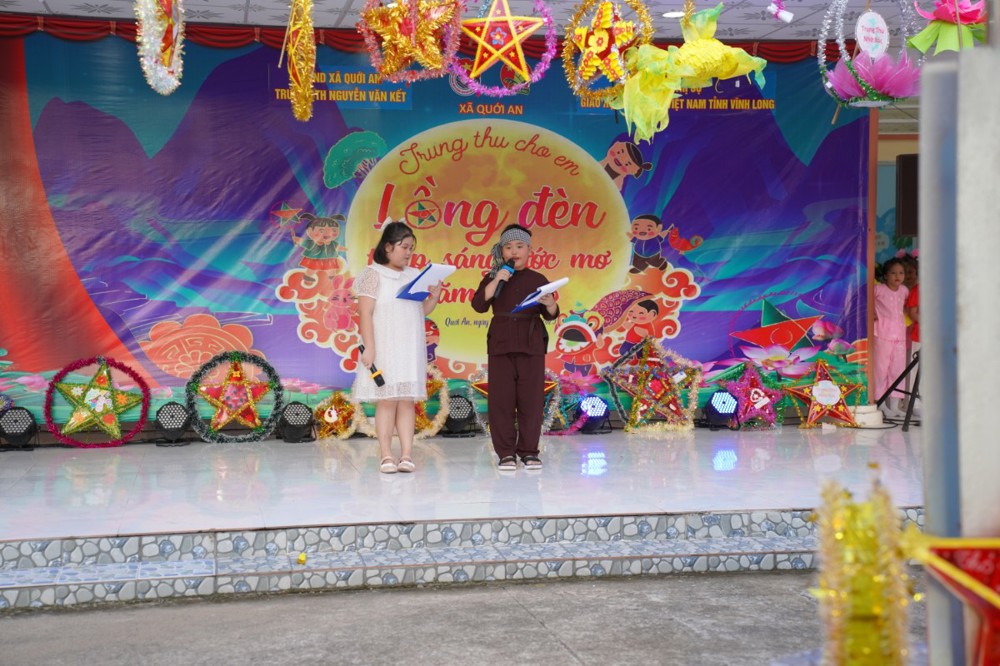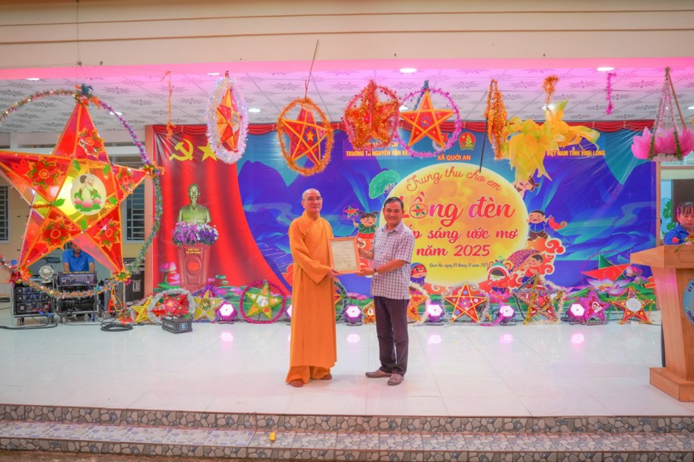 PSO - Chiều ngày 5/10/2025 (nhằm ngày 14/8 Âm Lịch), tại trường Tiểu học Nguyễn Văn Kết, xã Quới An, tỉnh Vĩnh Long đã diễn ra chương trình “Trung thu cho em” với chủ đề “Lồng đèn thắp sáng ước mơ”. Đây là hoạt động đầy ý nghĩa do Ban Trị sự GHPGVN tỉnh Vĩnh Long phối hợp cùng chính quyền địa phương, Ban Giám hiệu nhà trường và các mạnh thường quân tổ chức, nhằm mang đến cho các em thiếu nhi một mùa Trăng Rằm ấm áp, trọn vẹn.
