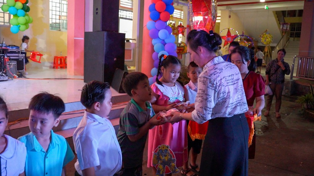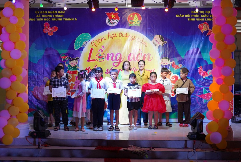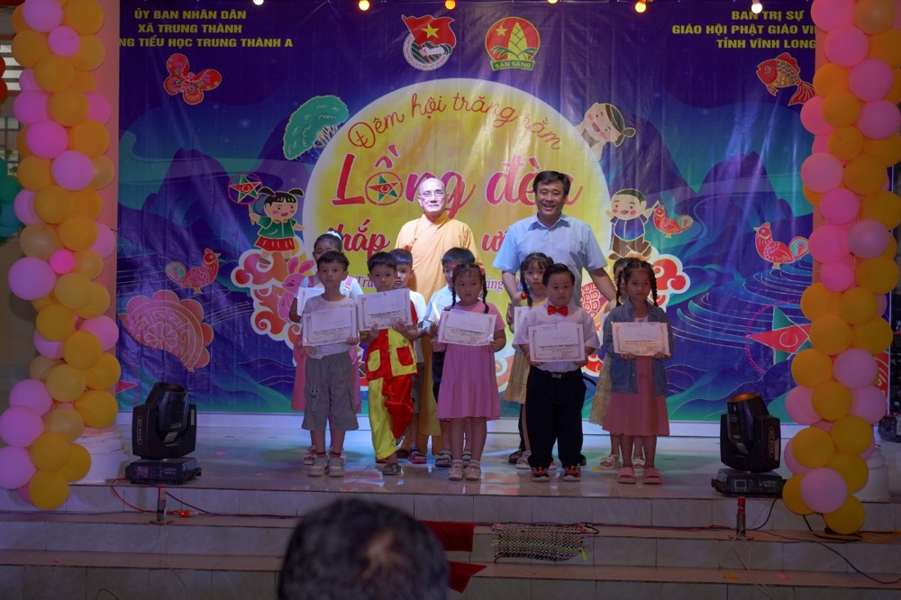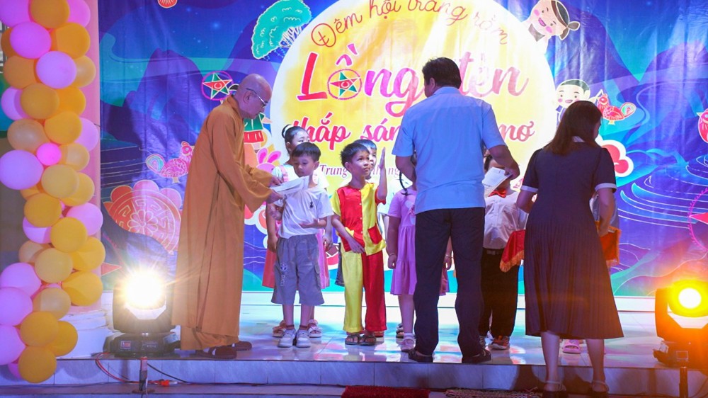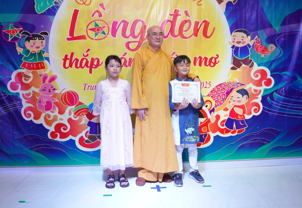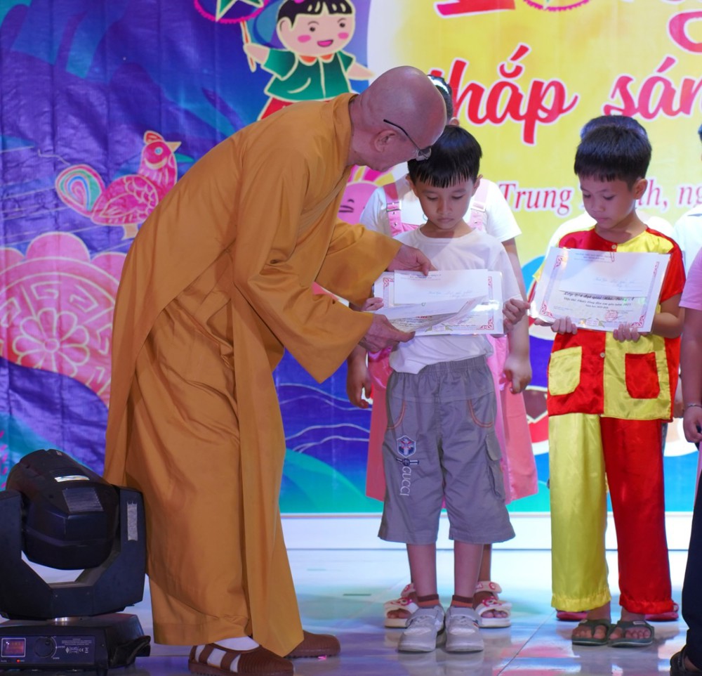 Đêm hội cũng diễn ra lễ trao giải Hội thi làm lồng đèn Trung thu và phát quà đến toàn thể học sinh. Mỗi phần quà trị giá 45 nghìn đồng, tổng kinh phí chương trình lên đến 144 triệu đồng. Dù là những món quà giản dị, nhưng chứa đựng tình thương và sự quan tâm của cộng đồng dành cho các em thiếu nhi. Đây thực sự là một mùa Trung thu đậm tình người, nơi những hạt giống từ bi và trí tuệ tiếp tục được gieo trồng trong tâm hồn trẻ thơ.