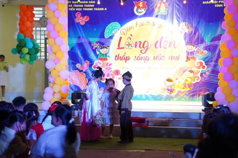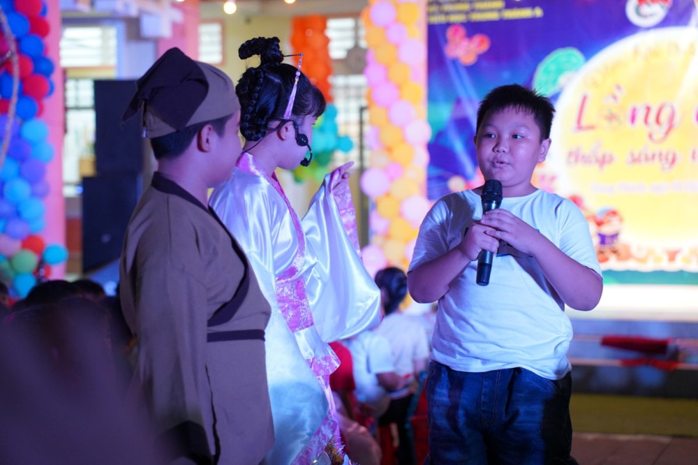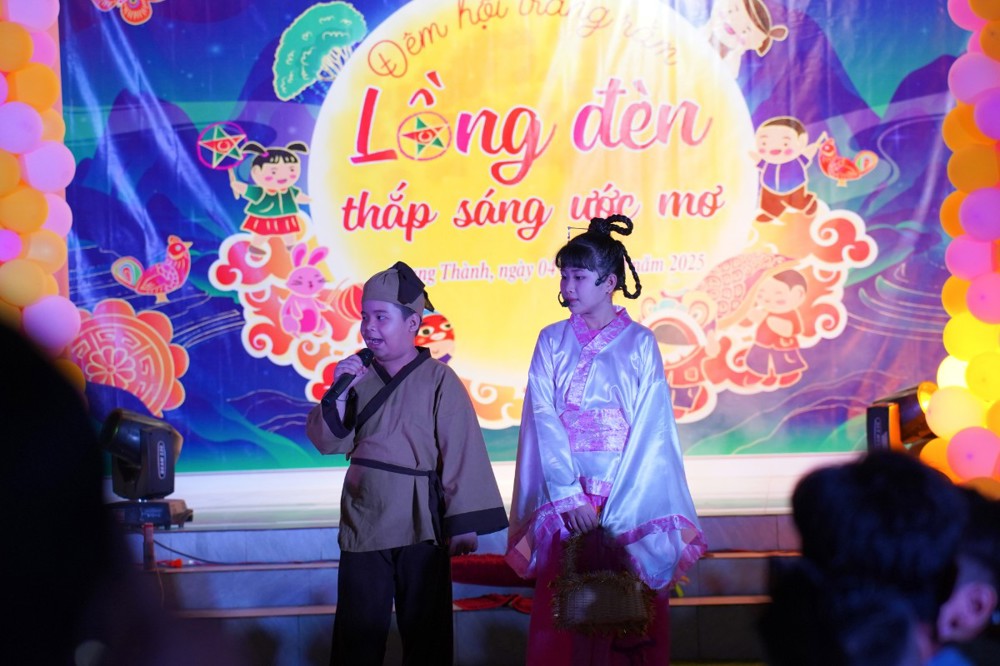 Một điểm nhấn đặc biệt của chương trình là hoạt cảnh “Đêm hội Trăng Rằm” với sự xuất hiện của chú Cuội và chị Hằng, xen lẫn hình ảnh học tập hiện đại. Hoạt cảnh gửi gắm thông điệp ý nghĩa: ánh trăng Trung thu không chỉ soi sáng những giấc mơ tuổi thơ, mà còn khơi dậy tinh thần hiếu học, nuôi dưỡng trí tuệ và lòng từ bi, hướng đến một tương lai ứng dụng công nghệ trong đời sống học tập.
