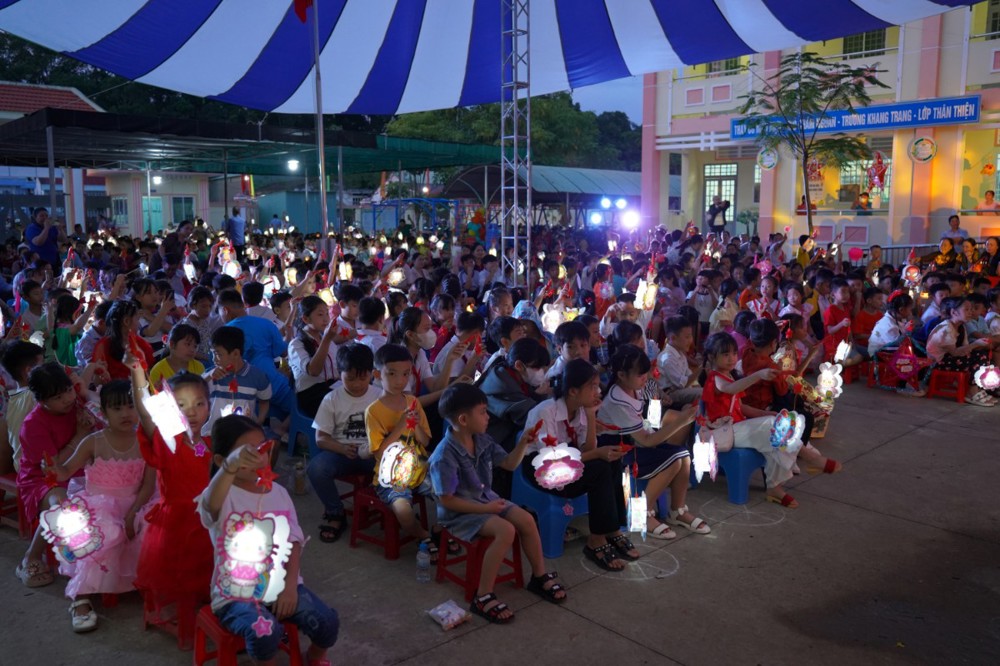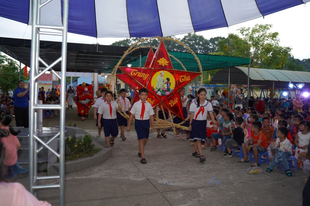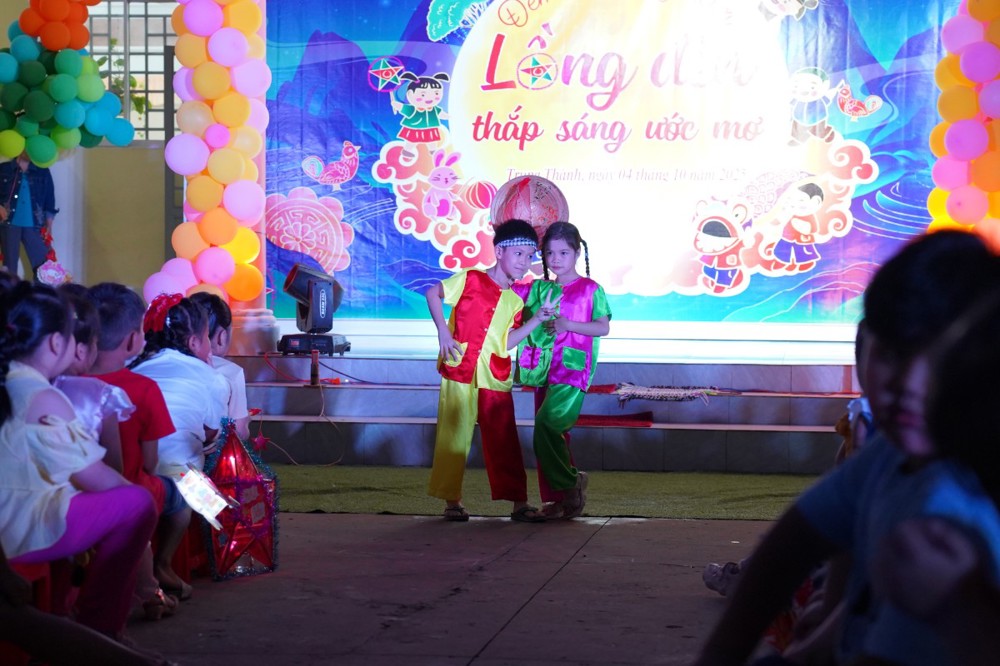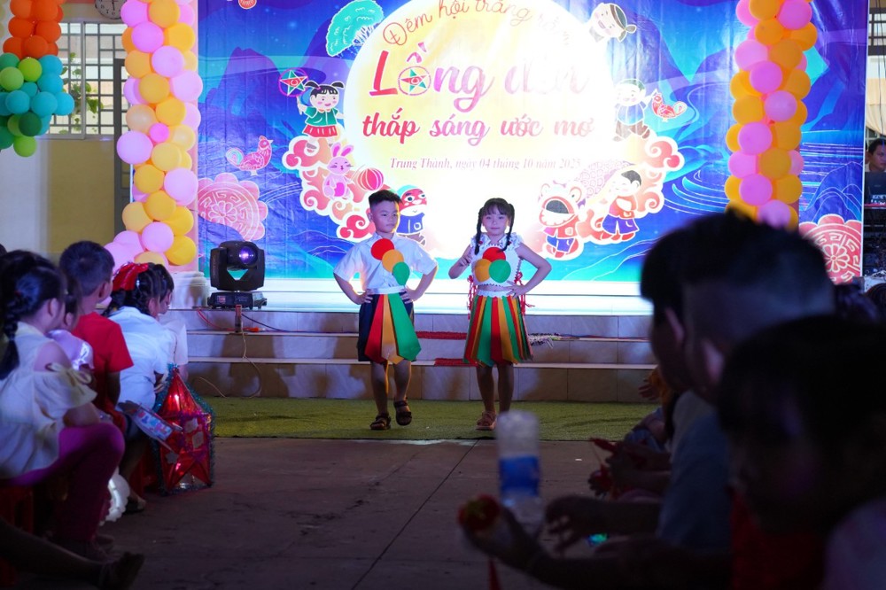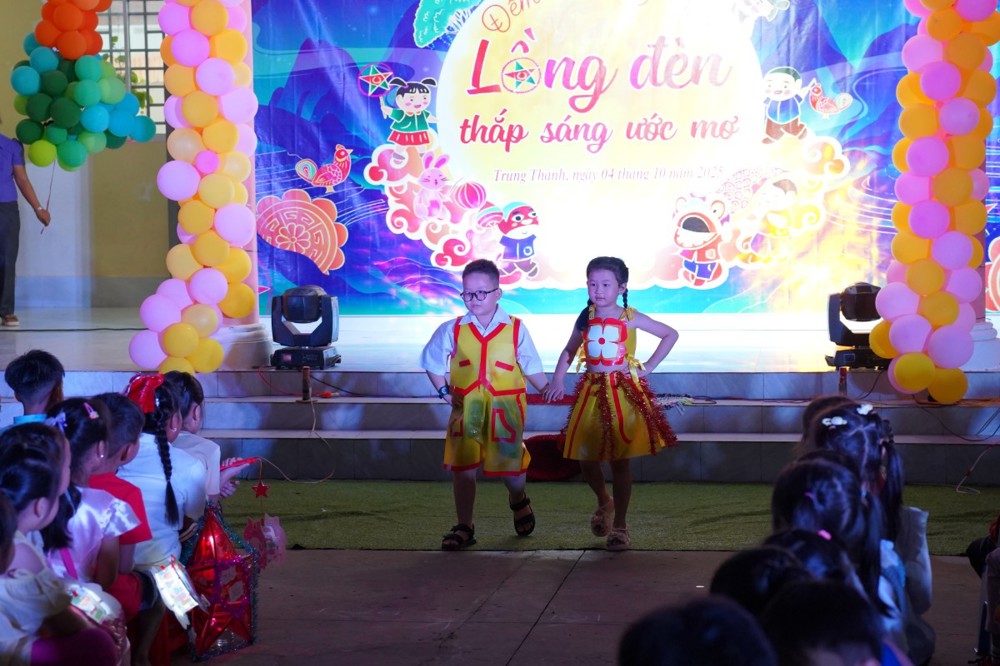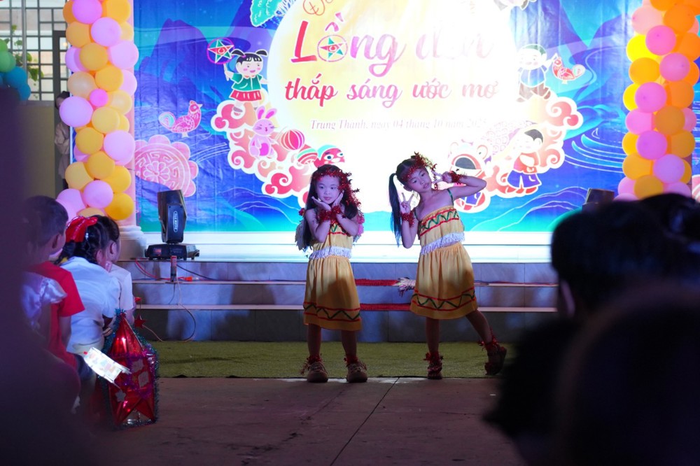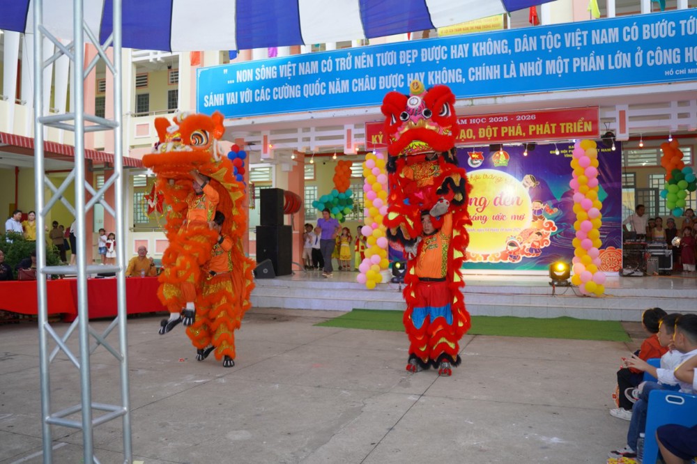 Mở đầu chương trình là tiết mục múa lân – rước đèn sôi động trong tiếng trống hội rộn rã. Hàng trăm ánh đèn lung linh cùng nụ cười hồn nhiên của các em nhỏ đã làm bừng sáng không gian đêm hội. Các em còn được thưởng thức nhiều tiết mục văn nghệ đơn ca, song ca, tốp ca, múa đặc sắc và biểu diễn thời trang tái chế,… tất cả đều toát lên vẻ hồn nhiên, tươi sáng của tuổi thơ.