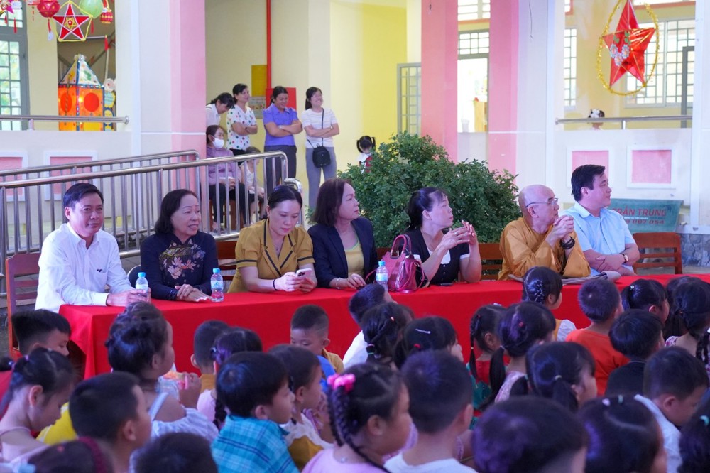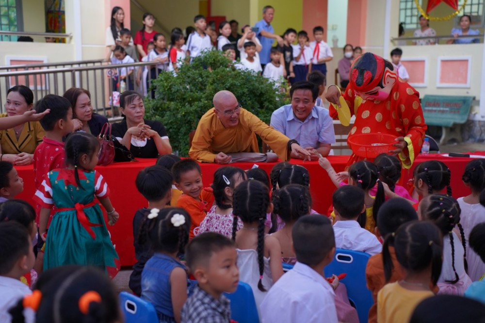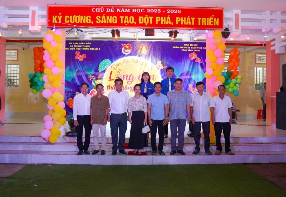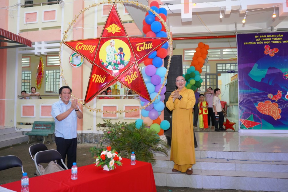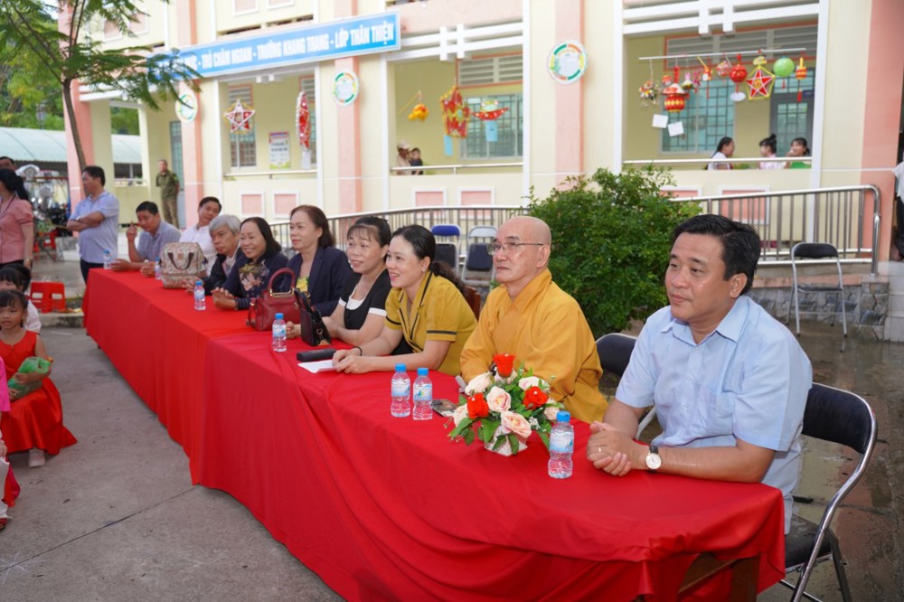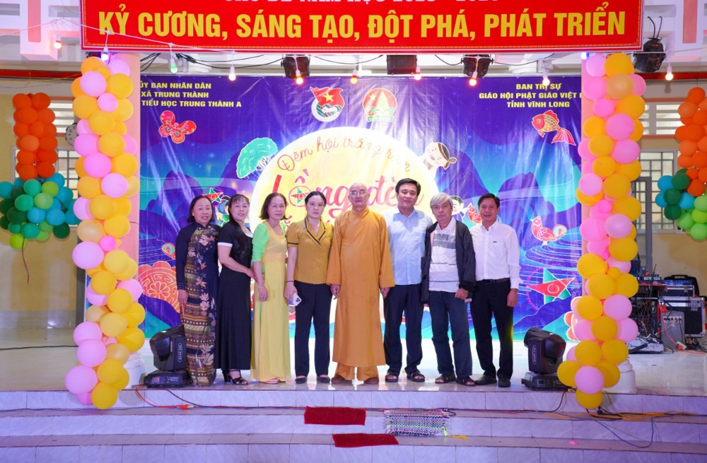Quang lâm tham dự có Thượng tọa Thích Lệ Lạc – Ủy viên HĐTS, Phó Trưởng ban Thường trực BTS GHPGVN tỉnh Vĩnh Long; ông Bùi Tấn Đảm – Bí thư Đảng ủy, Chủ tịch HĐND xã Trung Thành; bà Tô Thị Liễu Châu – Phó Bí thư Đảng ủy, Chủ tịch UBND xã Trung Thành; ông Nguyễn Văn Ngọc Anh – Bí thư Chi bộ, Hiệu trưởng trường Tiểu học Trung Thành A, cùng đại diện các cơ quan, ban ngành, Ban Giám hiệu nhà trường và các mạnh thường quân, thể hiện tình cảm và sự quan tâm dành cho thế hệ mầm non của đất nước.