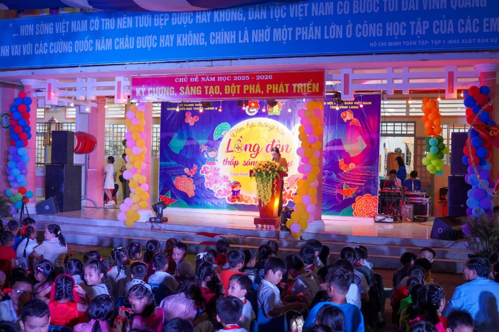 Trong khuôn khổ chương trình, bà Tô Thị Liễu Châu đã thay mặt lãnh đạo xã Trung Thành đọc thư chúc Tết Trung thu của Tỉnh ủy – HĐND – UBND – UBMTTQ Việt Nam tỉnh Vĩnh Long gửi đến các em thiếu nhi. Những lời nhắn nhủ chân tình ấy như ngọn đuốc soi đường, động viên các em nỗ lực học tập, rèn luyện, giữ gìn tâm hồn trong sáng và hiếu kính.