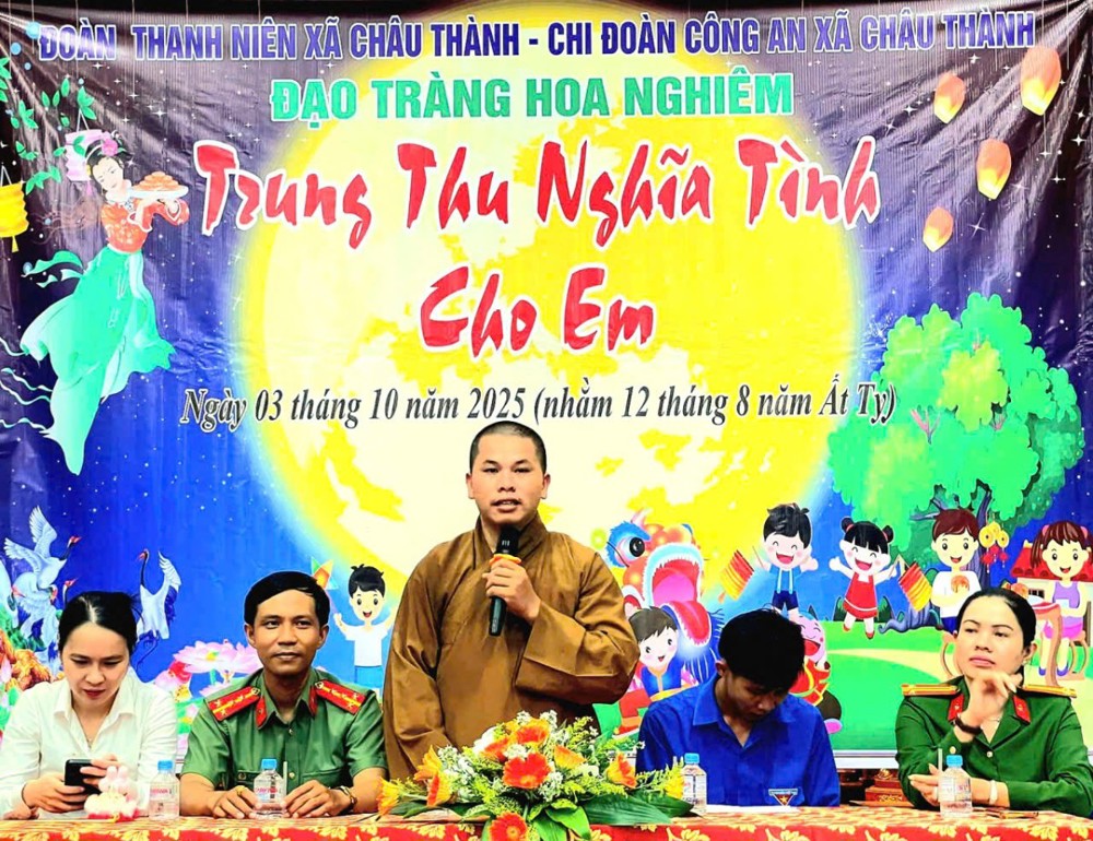 PSO - Hòa cùng không khí rộn ràng của Tết Trung thu, Đạo tràng Hoa Nghiêm (xã Châu Thành, tỉnh Vĩnh Long) đã tổ chức chương trình “Vui Hội Trung Thu – Ấm Áp Tình Thương” với mong muốn mang đến cho các em nhỏ một mùa trăng trọn vẹn niềm vui, ánh sáng yêu thương và sự sẻ chia đầy ý nghĩa.