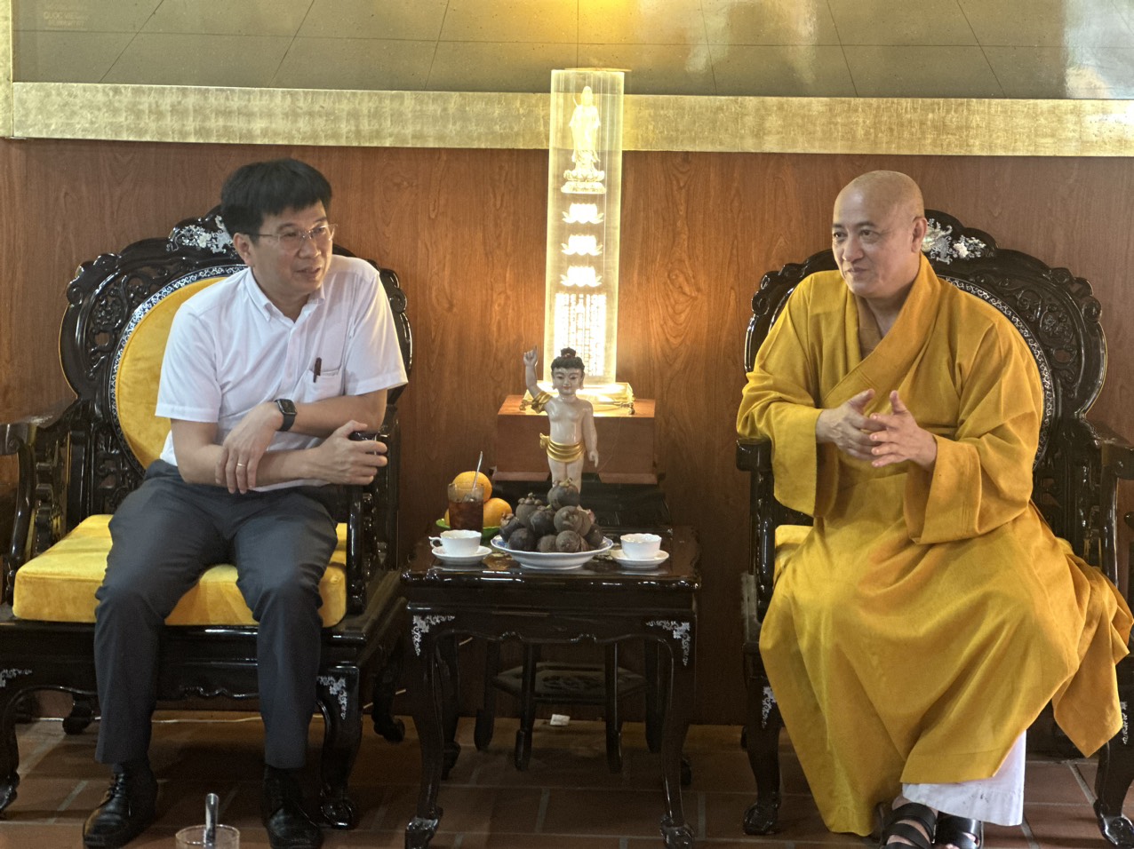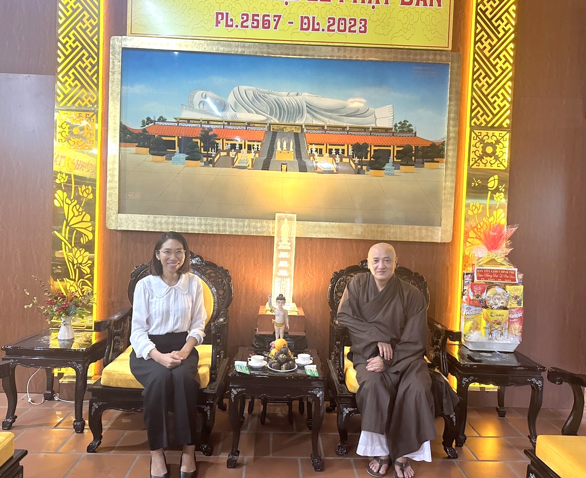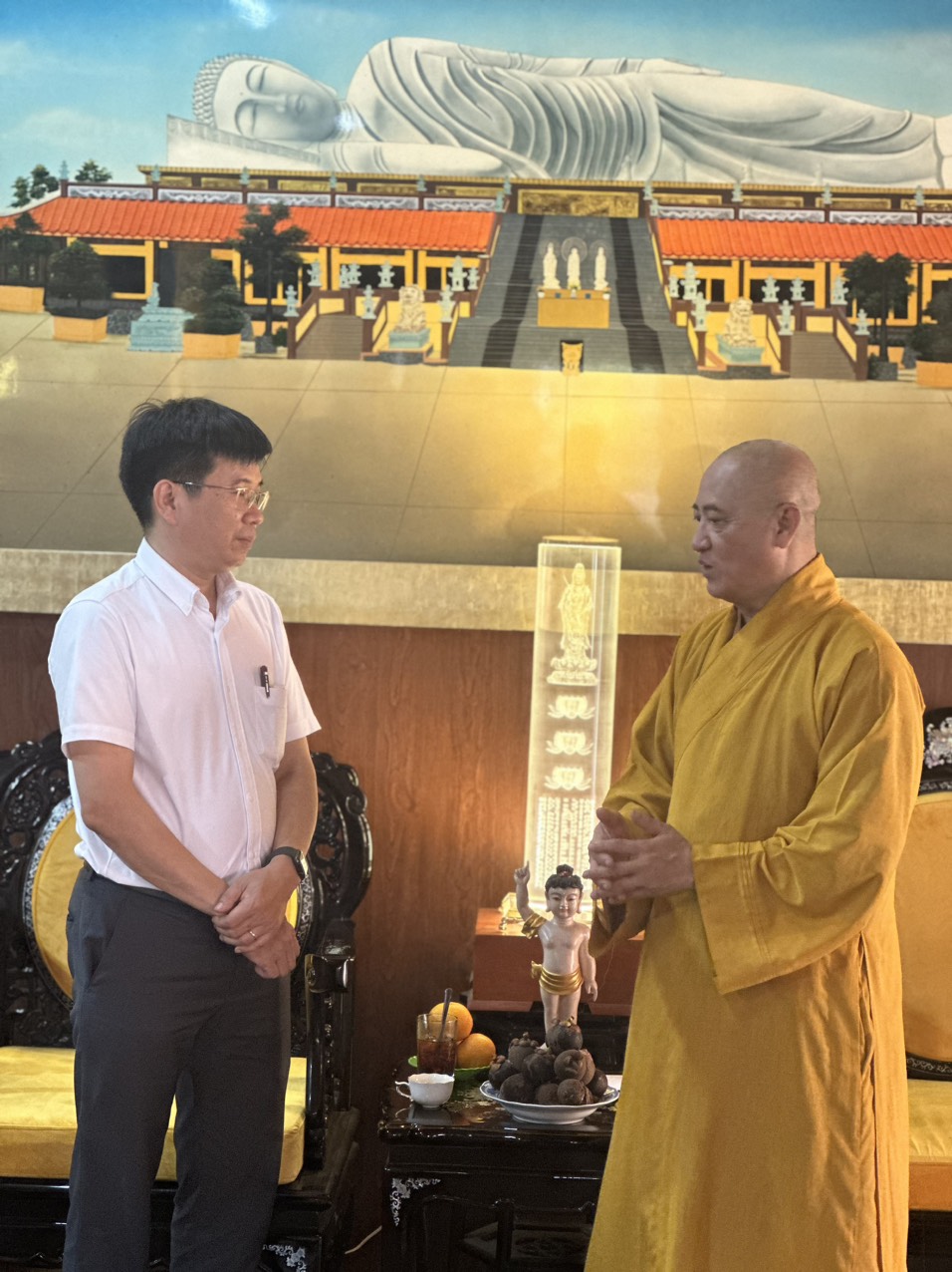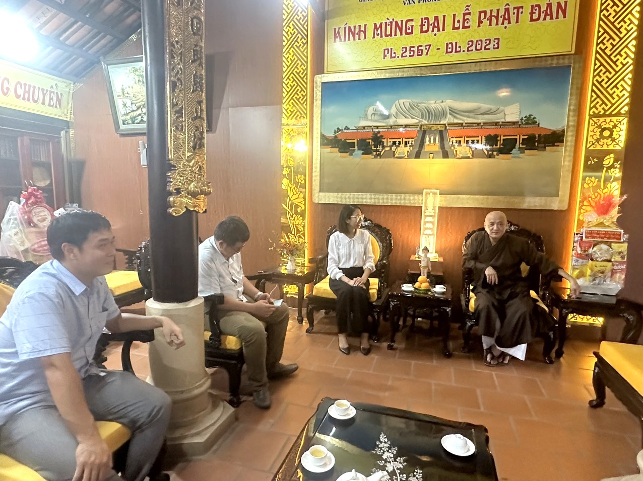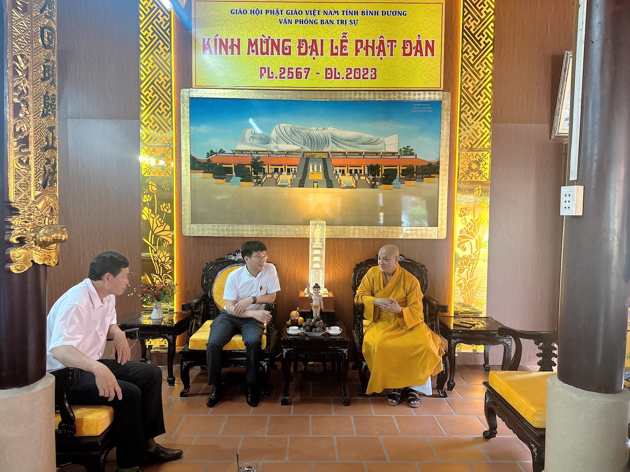 PSO - Đoàn do ông Lê Minh Khánh - Vụ trưởng Vụ Phật giáo, Ban Tôn giáo Chính Phủ làm trưởng đoàn đã đến thăm, chúc mừng Phật đản Phật lịch 2567 đến Hòa thượng Thích Huệ Thông – Phó Chủ tịch HĐTS, Trưởng ban Pháp chế Trung ương, Trưởng ban Trị sự GHPG Việt Nam tỉnh Bình Dương tại Văn phòng Ban Trị sự - chùa Hội Khánh (phường Phú Cường, thành phố Thủ Dầu Một) vào sáng ngày 28/5/2023.