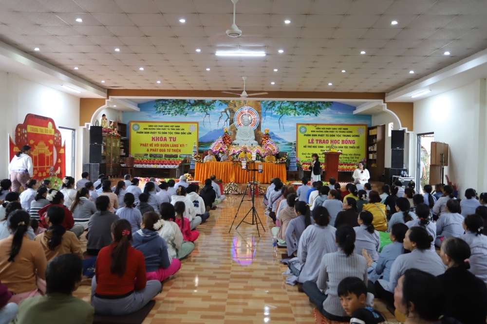 PSO - Trong hai ngày 10 và 11/01/2026 (nhằm 22 - 23/11 năm Ất Tỵ), tại chùa Phước Quang (xã Đức Bình, tỉnh Đắk Lắk), Phân ban Phật tử Dân tộc tỉnh Đắk Lắk tổ chức khóa tu “Phật về buôn làng” cho hơn 400 đồng bào các dân tộc thiểu số. Khóa tu không chỉ là dịp tu học mà còn là không gian tâm linh lắng đọng, nơi đại chúng cùng sẻ chia, chuyển hóa những mất mát do thiên tai.