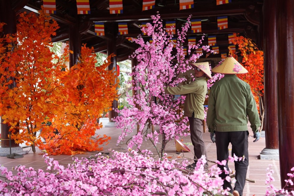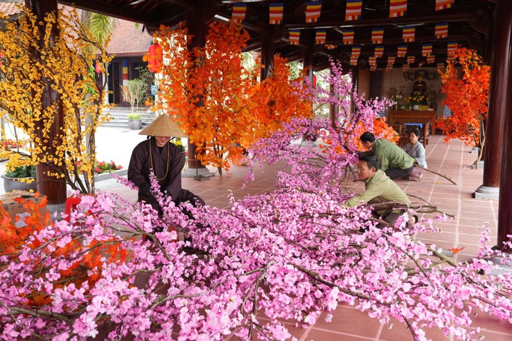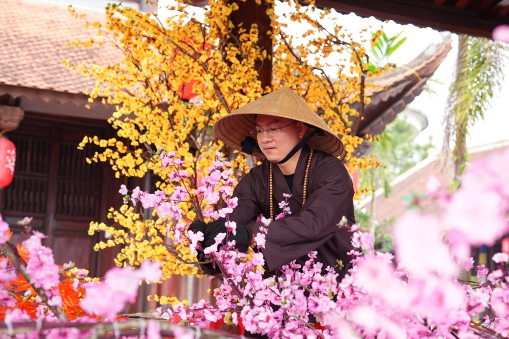 Sắc đỏ của lồng đèn, sắc vàng của hoa mai, hoa đào hồng thắm hòa quyện trong không gian thanh tịnh, tạo nên một bức tranh xuân rực rỡ nhưng vẫn đậm chất thiền. Nhưng có lẽ, điều làm nên không khí Tết nơi cửa Phật không chỉ là màu sắc, mà là sự lan tỏa của những con người đang cùng nhau vun vén, mong muốn mang đến một mùa xuân bình yên.