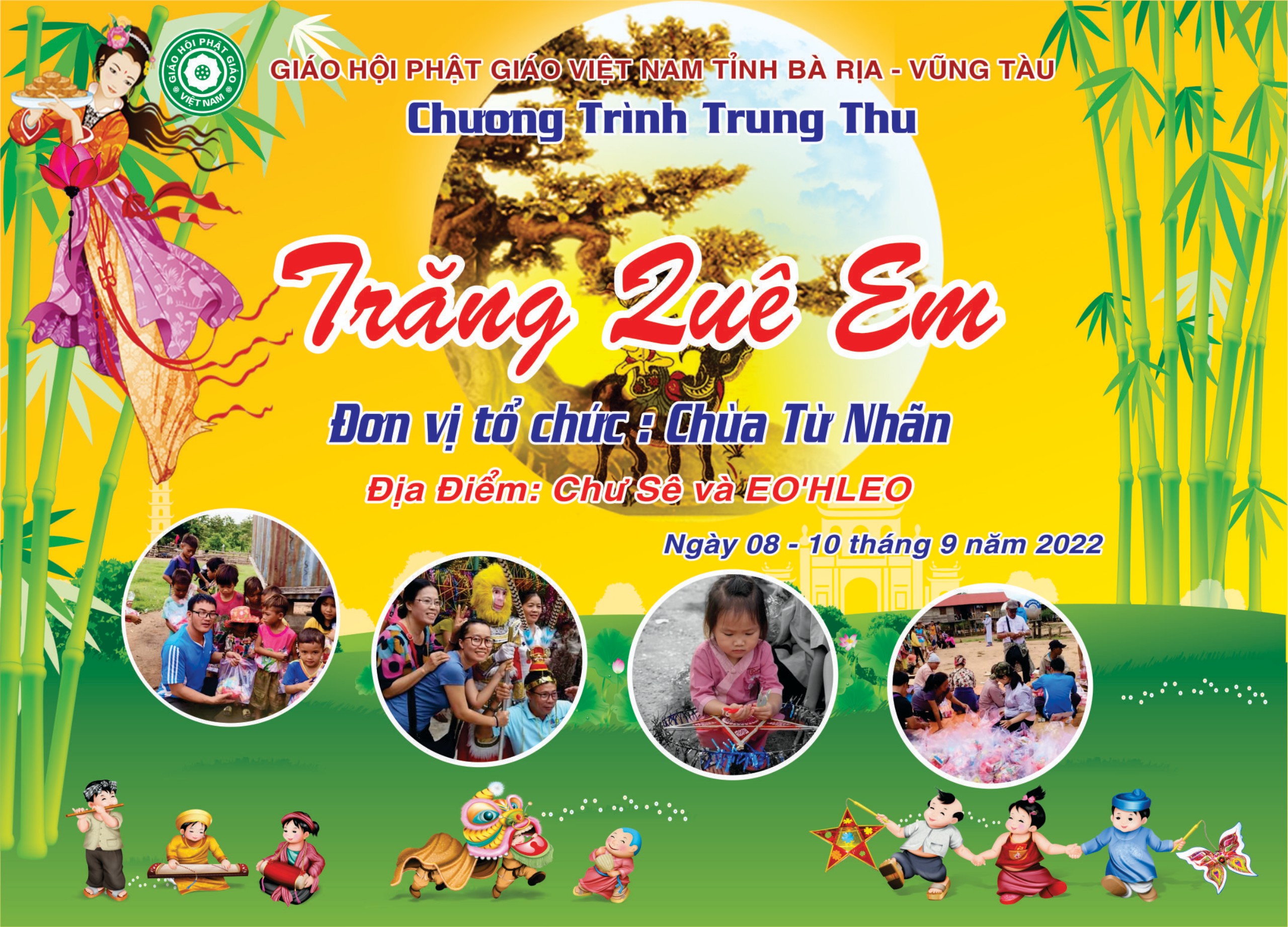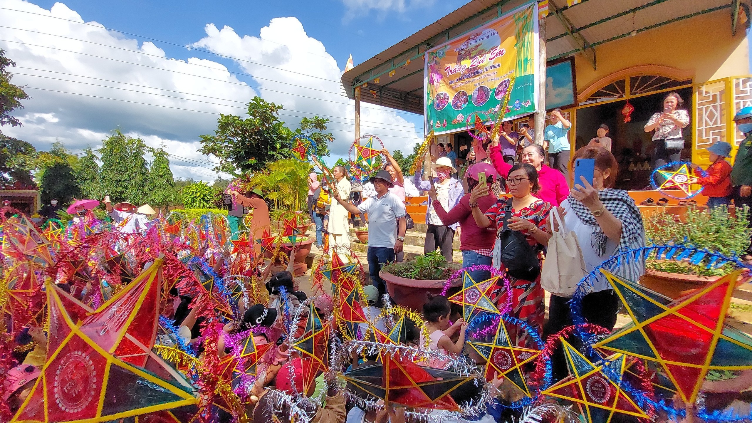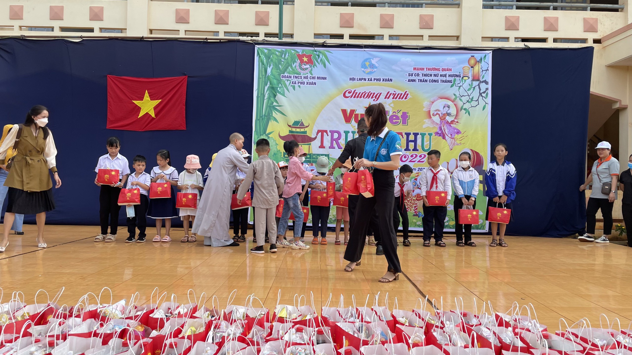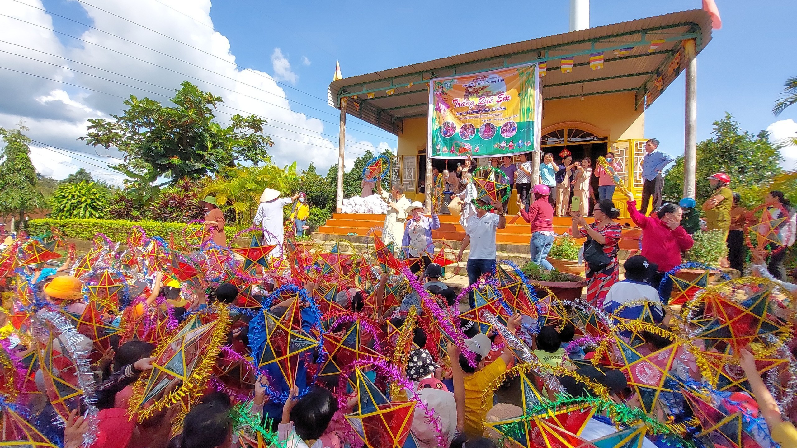PSO - Trung thu mang ý nghĩa đoàn viên, sum họp. Từ xưa đến nay, Trung thu là một nét đẹp văn hóa cũng là dịp để các em nhỏ vui chơi, rước đèn bên mâm cỗ. Và như thế, Trung thu đã mang dáng dấp của một cái “Tết thiếu nhi” ở nước ta. Thấy được nỗi lo của những hoàn cảnh khó khăn, đặc biệt là các em thiếu nhi nơi vùng cao không được tận hưởng một mùa Trung thu trọn vẹn do gia đình khó khăn về kinh tế. Với lòng từ bi, ngày 8 – 10/9/2022 (nhằm ngày 13 – 15/8 Nhâm Dần), ĐĐ. Thích Quảng Lý - trú xứ chùa Từ Nhãn (tỉnh BR-VT) làm trưởng đoàn đã hướng dẫn Phật tử tổ chức chương trình trung thu “Trăng quê em” gửi tặng các em nhỏ vùng cao 1640 phần quà với mong muốn các em có một mùa trung thu ấm áp và trọn vẹn niềm vui, hạnh phúc.