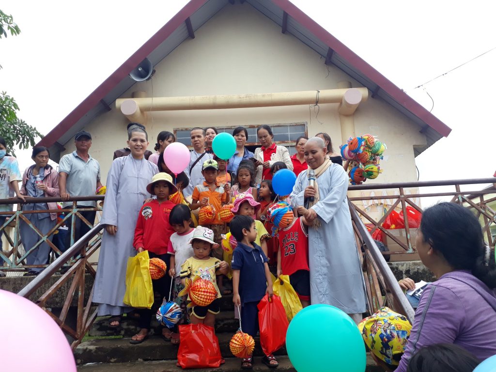 Tại đây, các em sống giữa núi rừng đa phần chỉ biết cái tết Trung thu qua lời kể của người đi trước hay qua những trang sách. Các em chưa từng nếm được cái mùi vị của chiếc bánh Trung thu hay những chiếc lồng đèn với nhiều hình thù vui nhộn hòa lẫn chung với tiếng nhạc trẻ thơ cùng những chiếc đèn cày bé xíu len lỏi trong ánh sáng giữa màn đêm. Để giúp các em được hưởng trọn niềm vui, vì thế Sư cô TN.Minh Hoa và cùng các thành viên đã trao trọn tấm lòng san sẻ yêu thương về trên buôn làng miền núi.