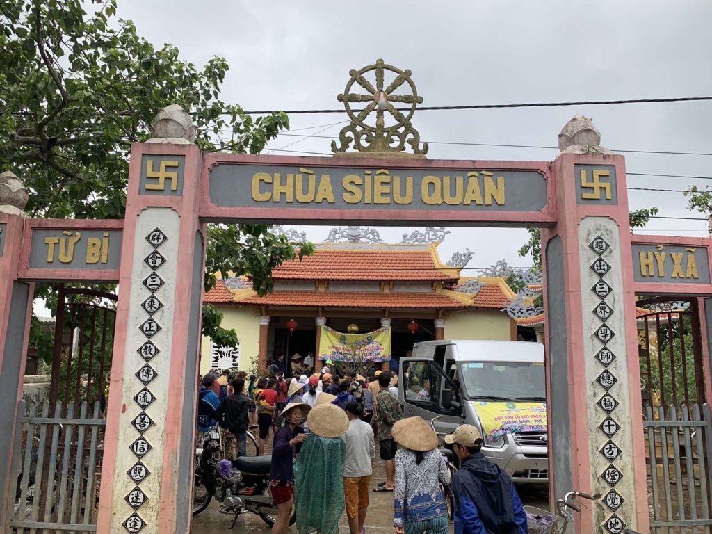 Buổi sáng, đoàn từ thiện đã đến huyện Hải Lăng (Quảng Trị) trao tặng 200 phần quà đến với bà con. Chiều cùng ngày đoàn đã đến trao tặng 300 phần quà và 300 bao thơ tịnh tài mỗi bao 150 ngàn đồng tại làng Siêu Quần - Làng Cồn Huế.