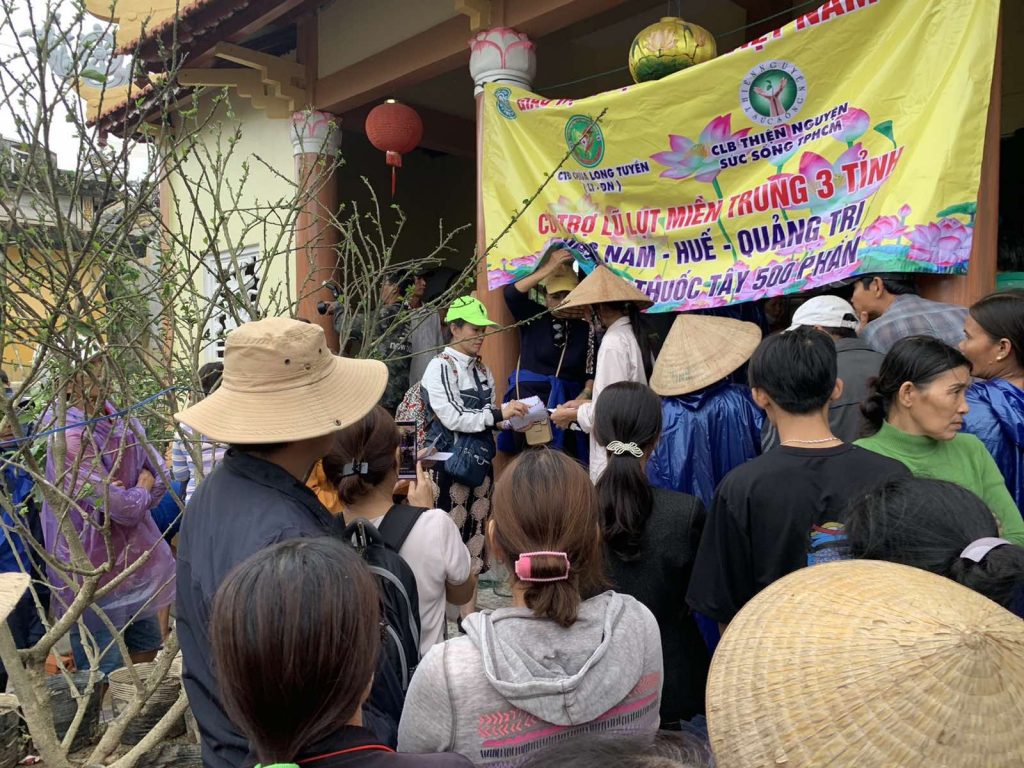 Vừa qua, do mưa bão kéo dài đã khiến đồng bào miền Trung gánh chịu những thiệt hại to lớn về người và của, nhiều làng mạc bị cô lập trong nước lũ. Trước tình hình đó SC. Thích Nữ Huệ Thiện đã vận động quý Phật tử chùa Long Tuyền cùng quý Mạnh thường quân và các nhà hảo tâm gần xa, cùng chung tay giúp bà con vùng lũ vượt qua khó khăn.