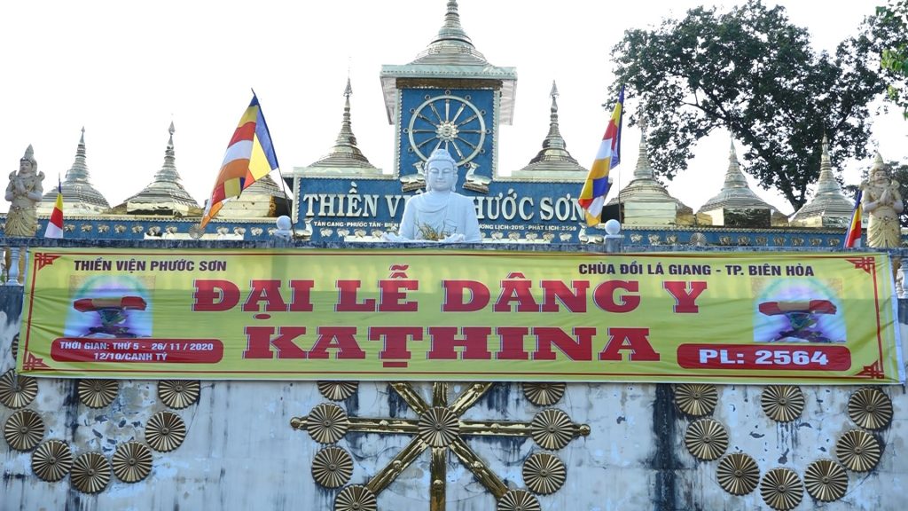 PSO - Trong không khí các chùa hệ phái Phật giáo Nam Tông đón mừng mùa lễ dâng y Kathina, sáng ngày 26/11/2020 (nhằm ngày 12/10 năm Canh Tý), tại thiền viện Phước Sơn (Đồi Lá Giang, P. Phước Tân, TP. Biên Hoà, tỉnh Đồng Nai) đã trang nghiêm diễn ra đại lễ dâng y Kathina đến chư Tăng sau 3 tháng an cư kiết hạ PL.2564 - DL.2020.