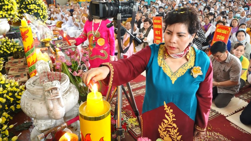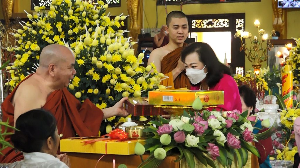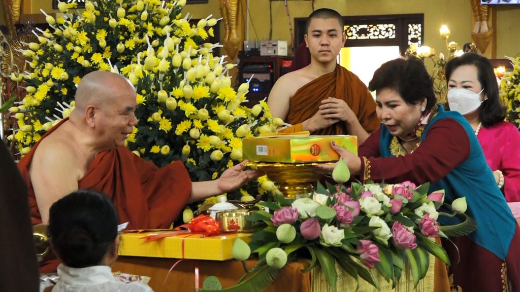 Gia đình đại thí chủ cùng đại diện lãnh sự quán các nước bạn đã niêm hương cầu nguyện và mong chư Phật, chư Tôn đức thọ nhận vật phẩm của mình.
